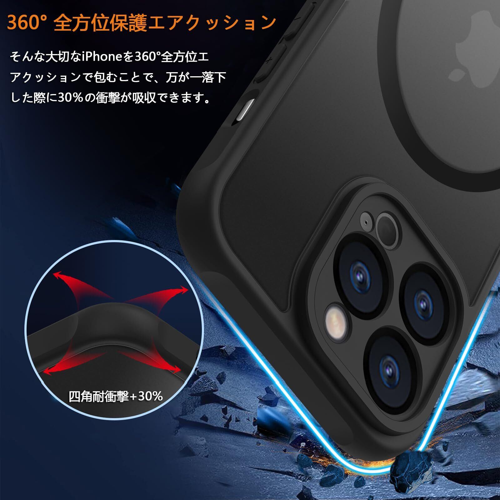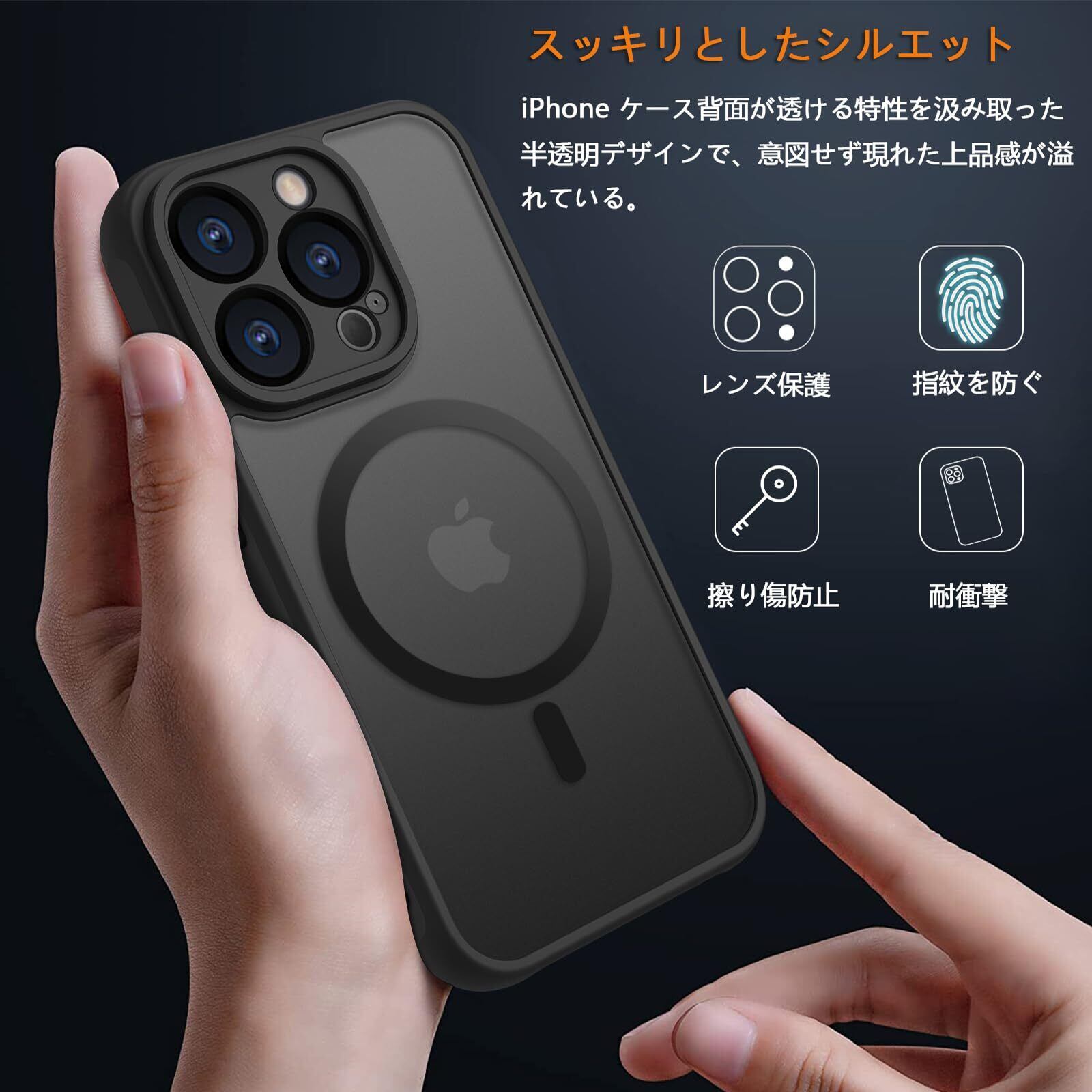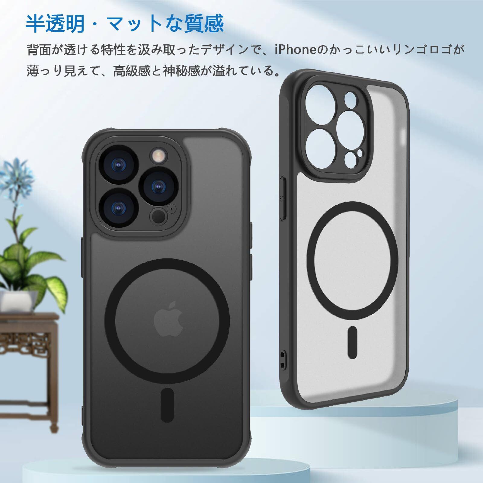 iPhone 15 pro ケース iphone ケース iPhone 15 pro ケース スマホカバー マット半透明 マグネット搭載 ワイヤレス充電 耐衝撃 指紋防止 滑り止め 米軍MIL規格・Magsafe対応 アイフォン15 pro 用カバー インチ PinLiSheng (ブラック, iPhone 15 Pro)