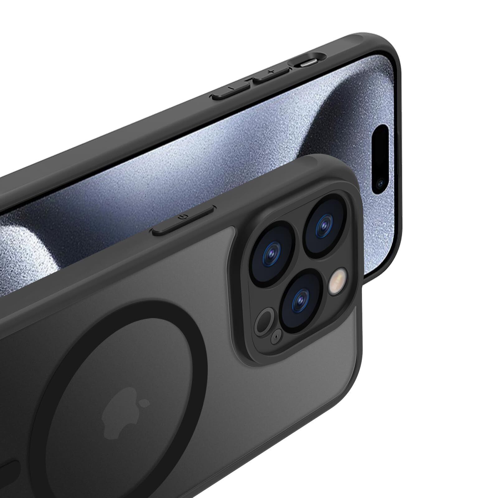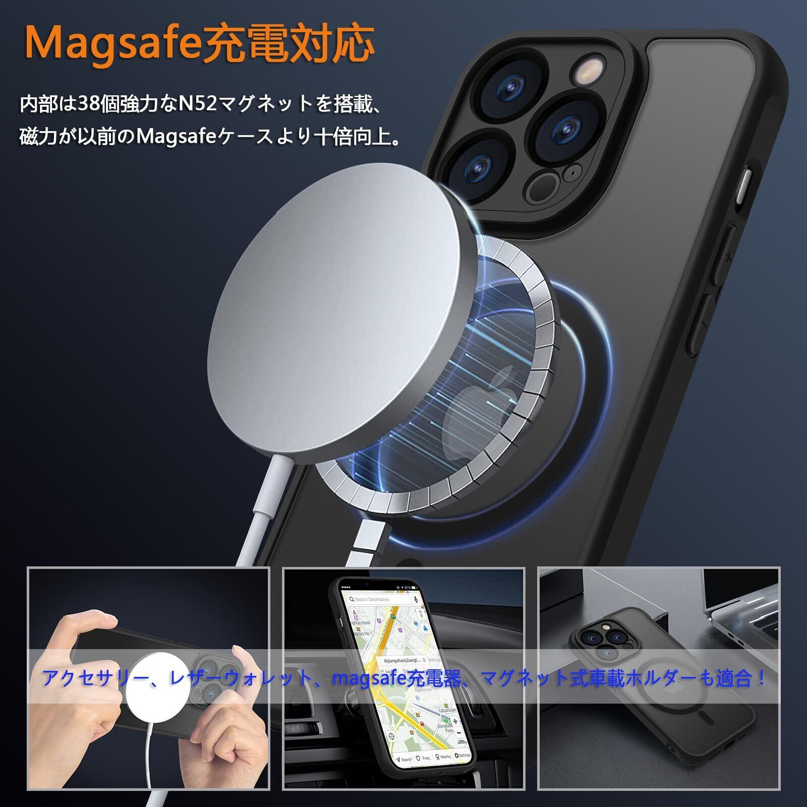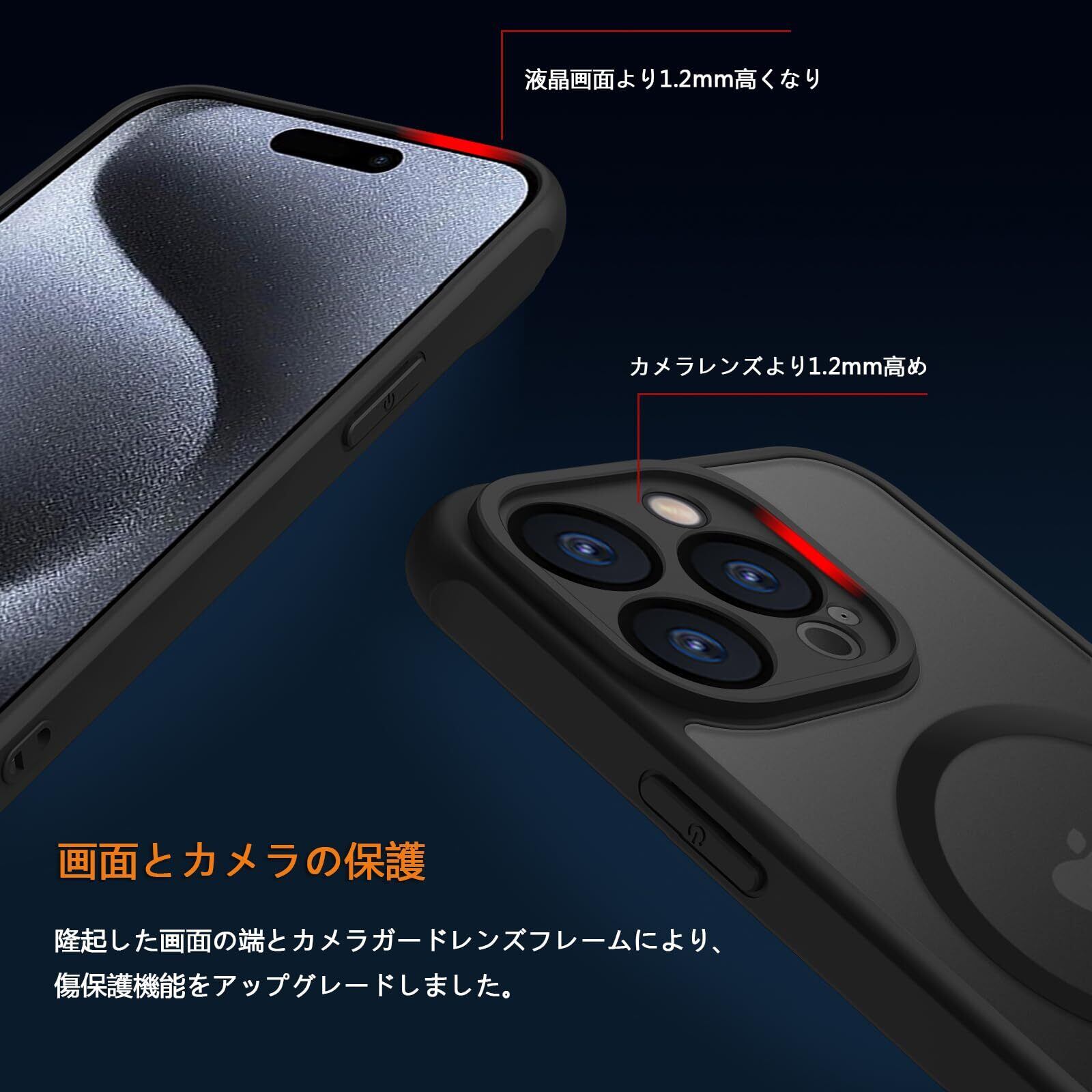iPhone 15 pro ケース iphone ケース iPhone 15 pro ケース スマホカバー マット半透明 マグネット搭載 ワイヤレス充電 耐衝撃 指紋防止 滑り止め 米軍MIL規格・Magsafe対応 アイフォン15 pro 用カバー インチ PinLiSheng (ブラック, iPhone 15 Pro)