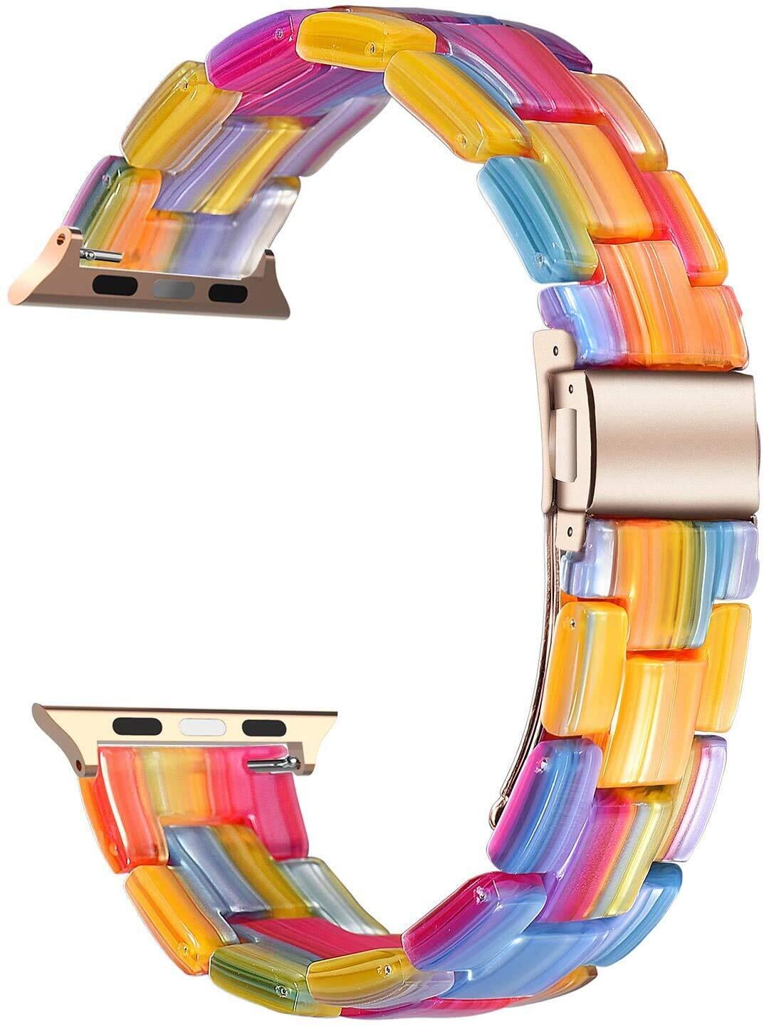 [Daturus] Apple Watch 樹脂ベルト ステンレス留め金 互換Apple Watch series10/9/8/7/6/SE/5/4/3/2/1 サイズ38mm/40mm/41mm/(42mm Series 10) アップルウォッチ ベルト ファッション/カジュアルスタイル アップルウォッチ対応 時計バンド (カラフル)