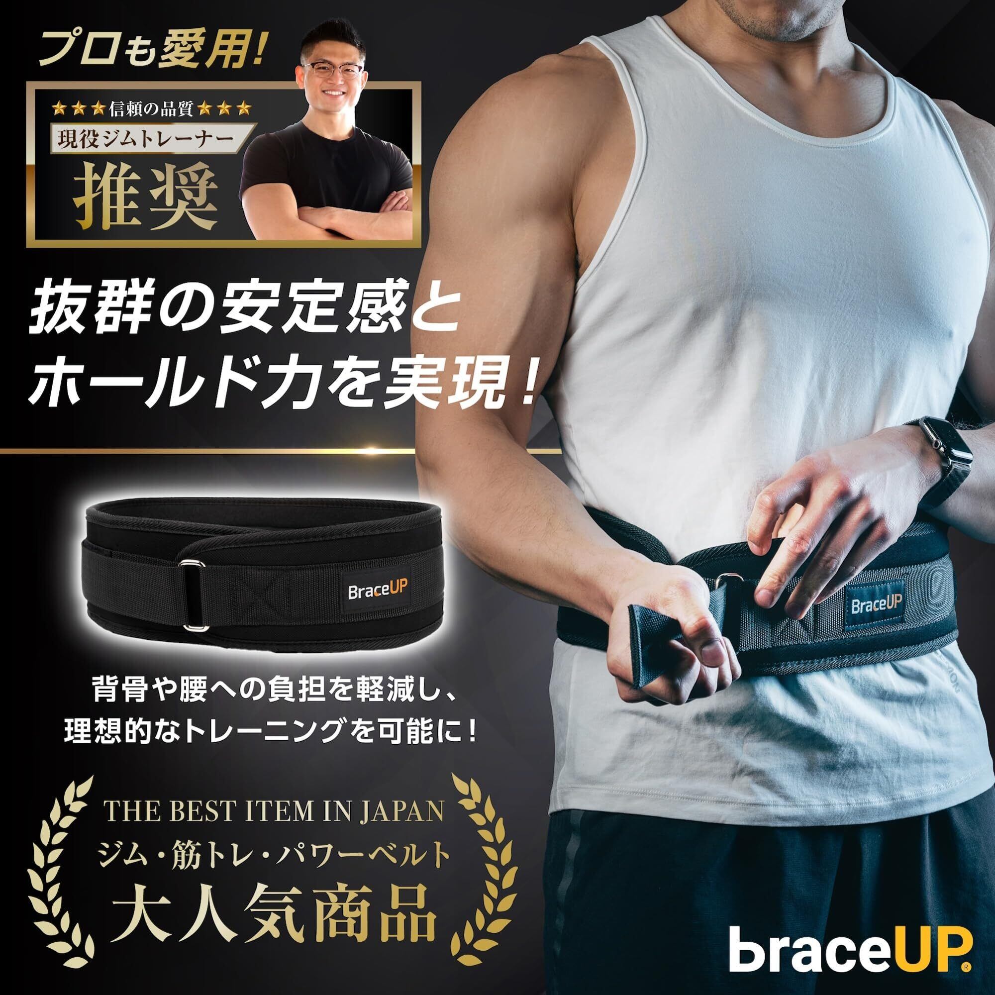 BraceUP トレーニングベルト, 幅10cm、軽量 - パワーベルト, 筋トレ ベルト, パワーベルト 筋トレ, リフティングベルト (XL)