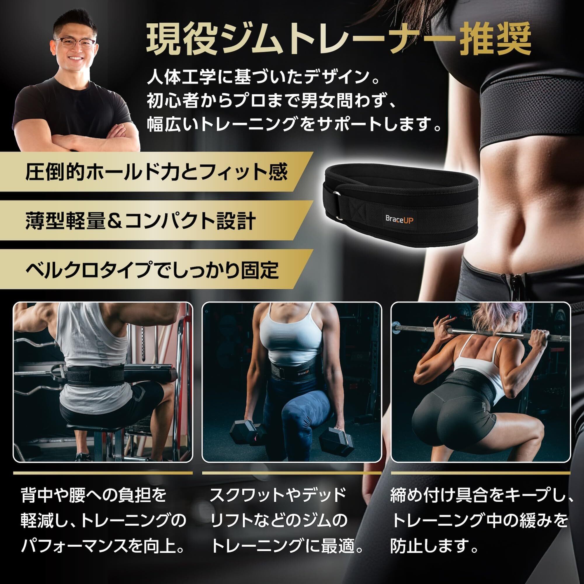 しっかりサポート:背骨や腰への圧迫を軽減し、サポートする理想的なトレーニングベルトです。スクワットやデッドリフトなどのジムのトレーニングに最適です。