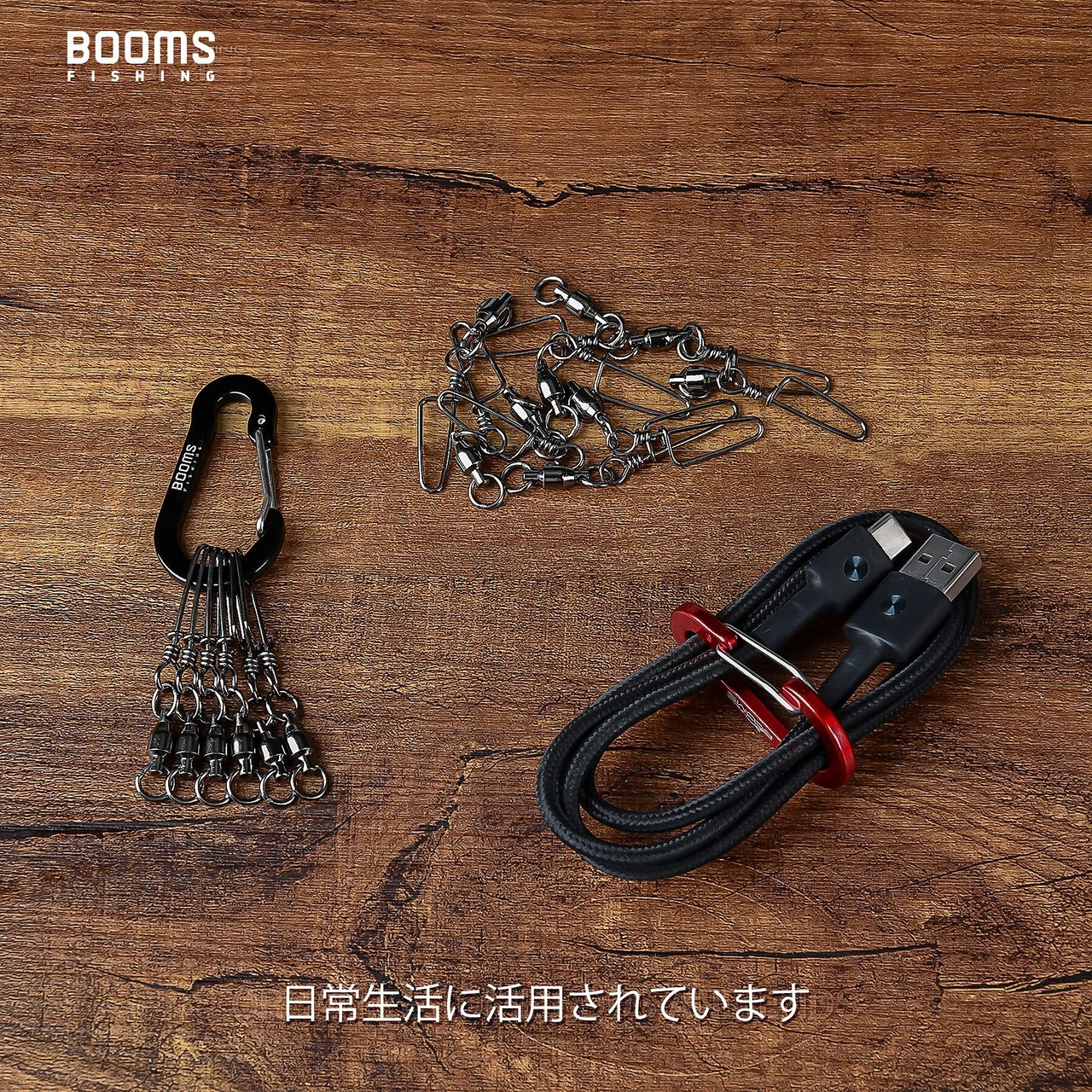 釣りで小物を下げり、登山やキャンプなど荷物の吊り下げ用にもよく使われています