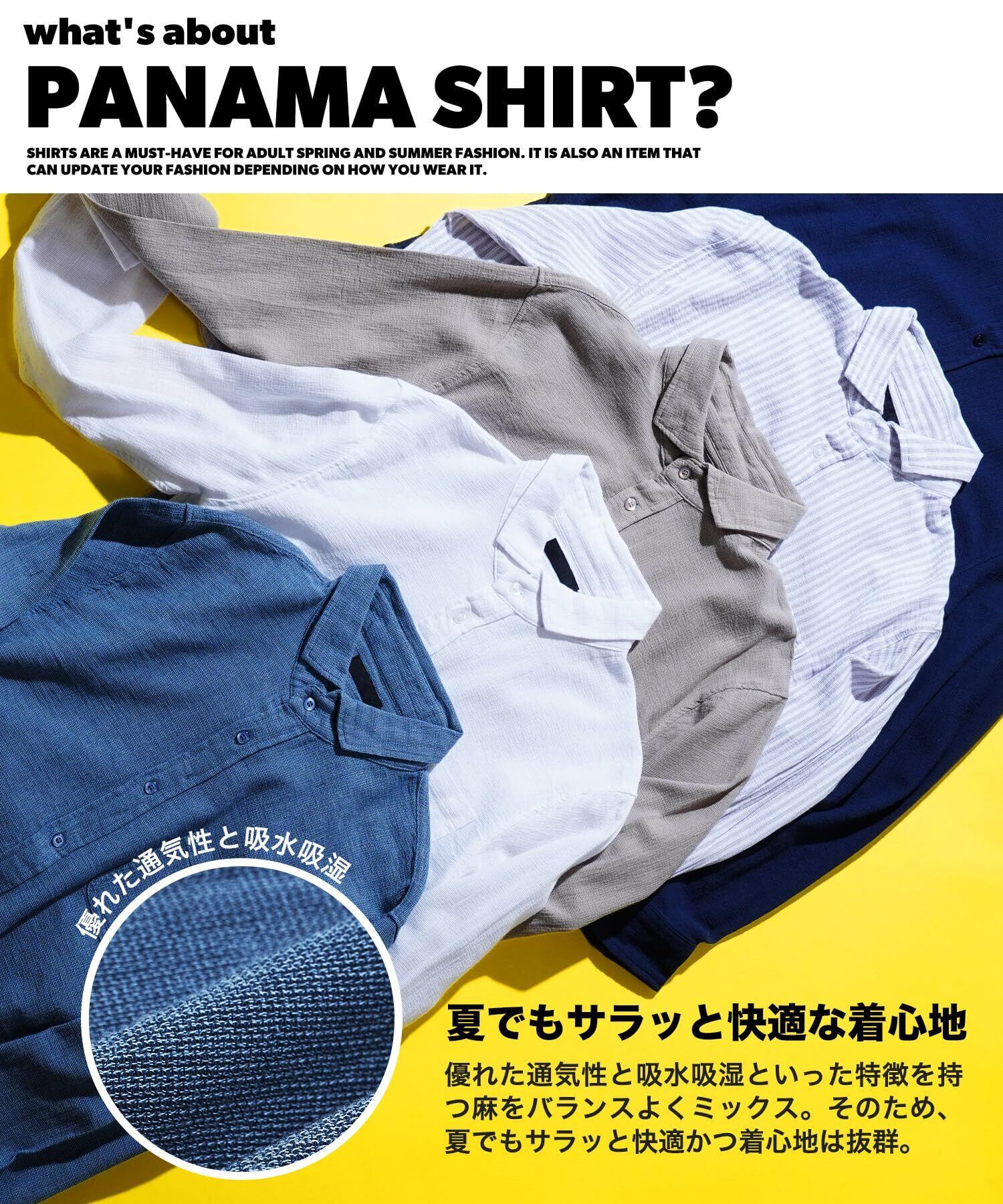 【商品説明】< 快適なワケ >綿麻特有の通気性で、夏でも快適に素材に綿麻生地を使用し、洗いざらし風のシワ感がこなれた雰囲気に、バツグンの通気性で、着心地はもちろん見た目にも風合いのあるイメージをプラス。< テレワーク・在宅でも窮屈感なくビジネススタイルに >テレワークが日常的になっている方も多い今、家だとしてもそこはビジネス、Tシャツではさすがに…そんな時にパナマシャツならオンライン会議やミーティングでも先方に不快感を与えません。しかも窮屈感なくテレワークができます。