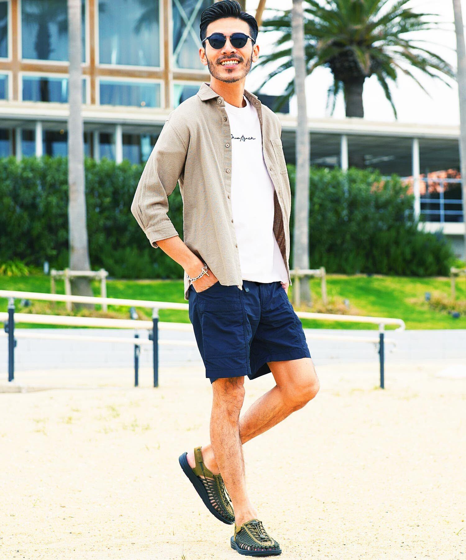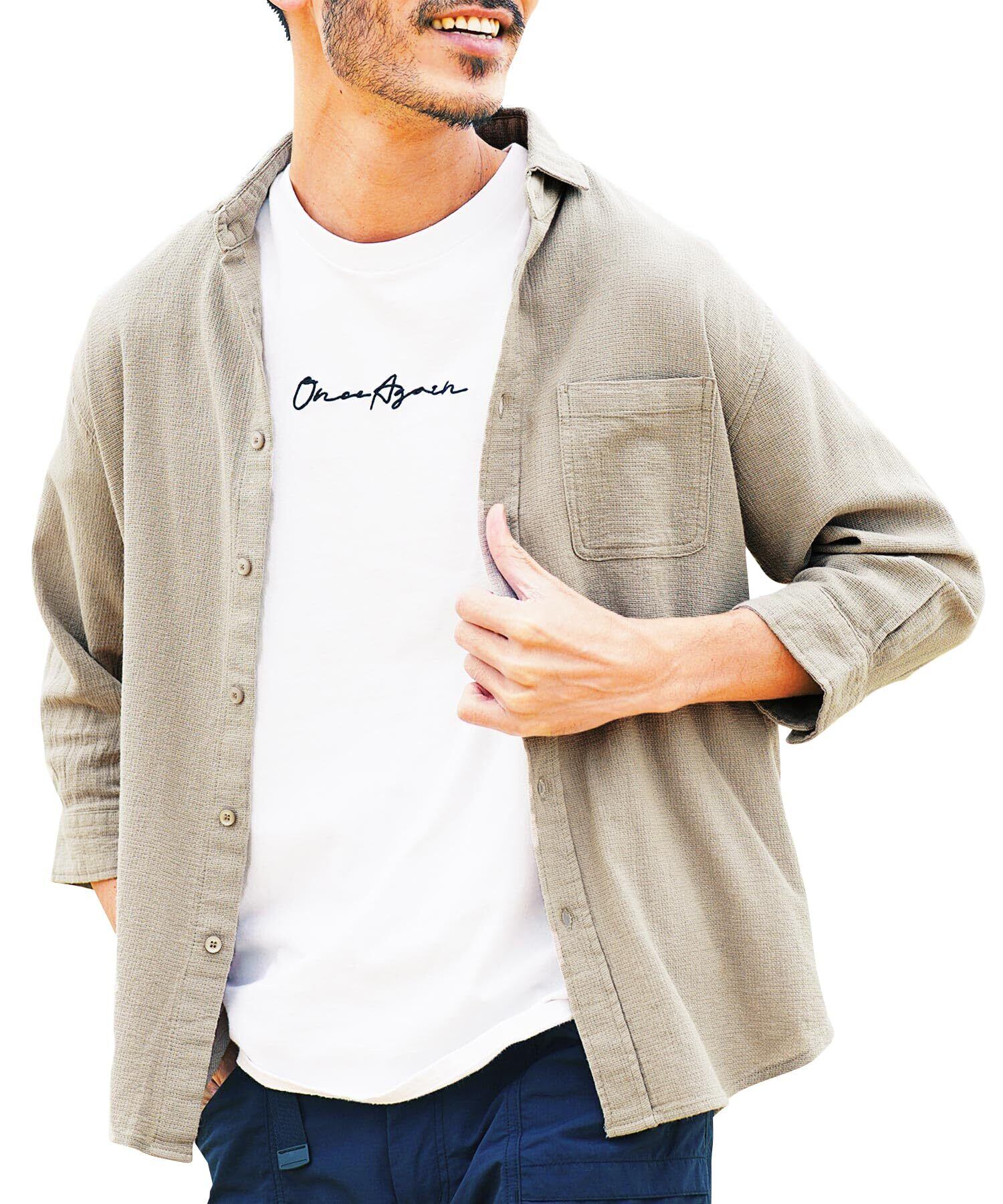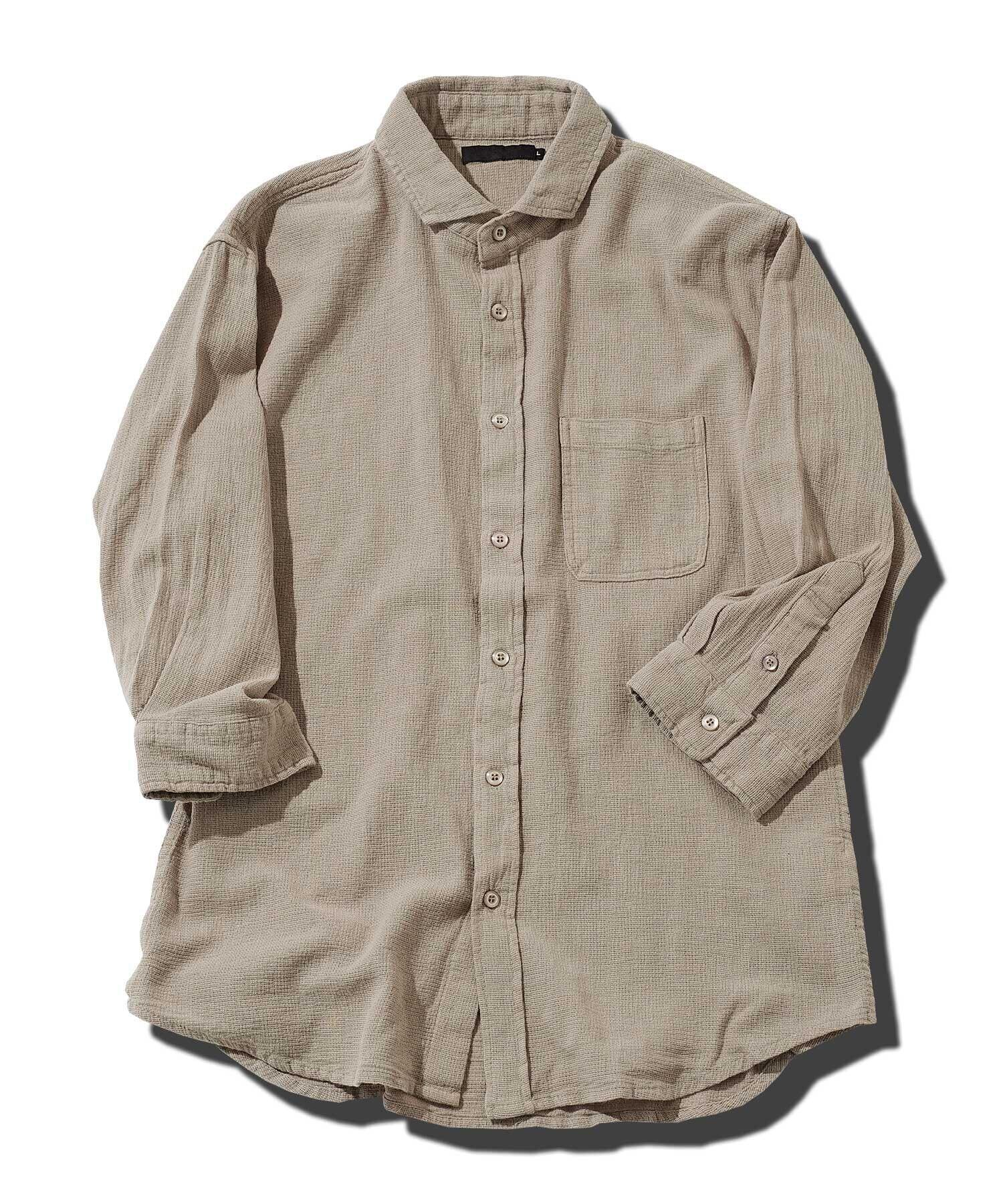 [JIGGYS SHOP] ジギーズショップ ストレッチ綿麻パナマシャツ|S Aベージュ(7分袖) 白シャツ 7分袖 長袖 綿麻 リネン ストレッチ 無地 ドライ 日除け 日除け対策 リネンシャツ 迷彩 サーフ系 夏 春 大人 シンプル