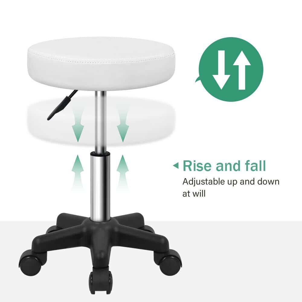 FURWOO スパ椅子 化粧椅子 サロン美髪美容ツール 小さな静音ローラー 高さ調節可能 白いスツール