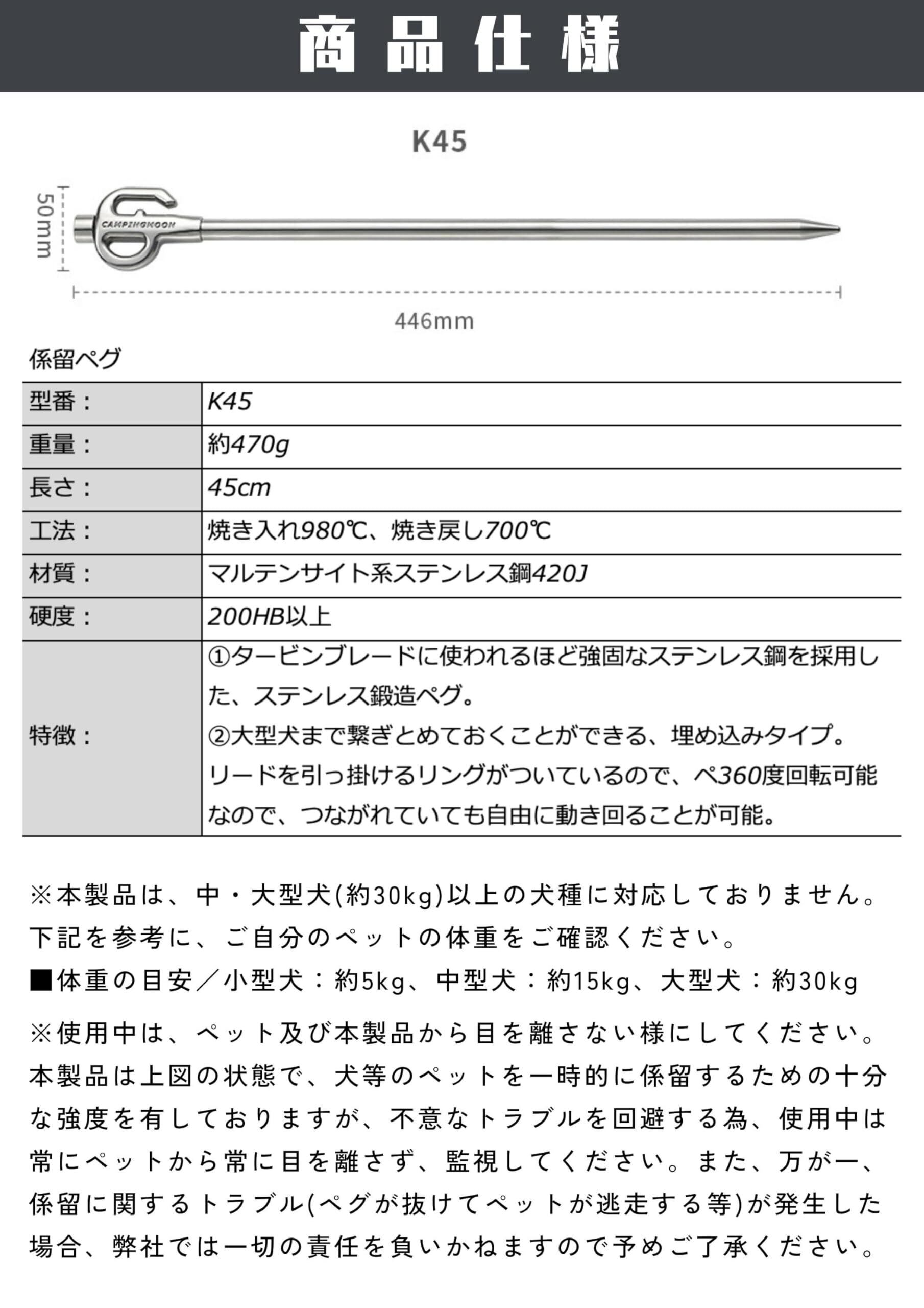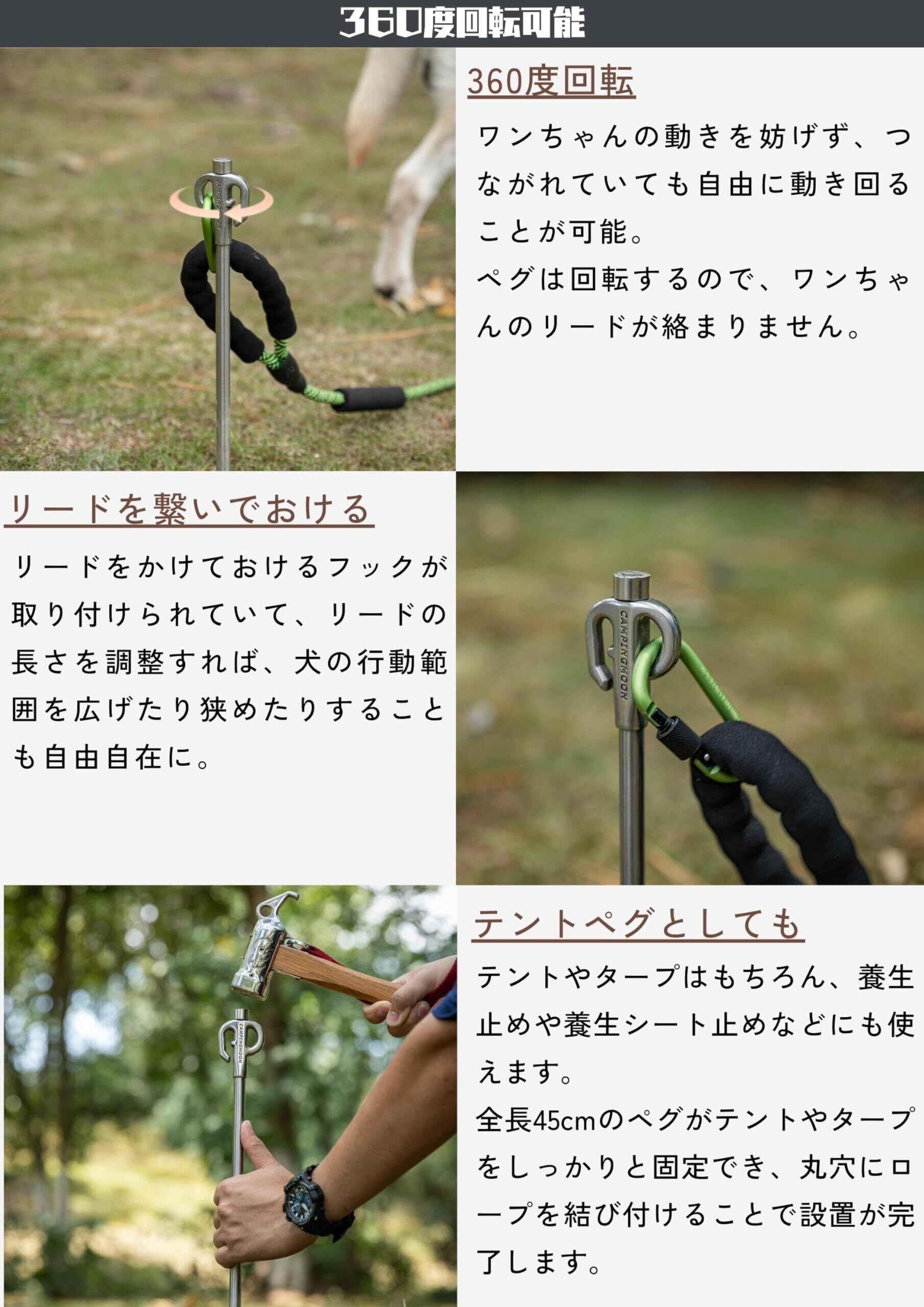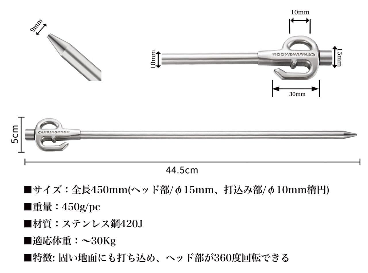 キャンピングムーン(CAMPING MOON) 係留用ポール 係留用ペグ ペット 大型犬用 ステンレス鋼420製 K45N 45cm 固い地面にも打ち込める 360度回転
