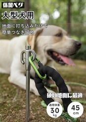 しっかりしたつくりのステンレス製係留具。 ペグは回転するので、ワンちゃんのリードが絡まりません。ポールや木がない際に役に立つ、リードの係留用アンカー。
