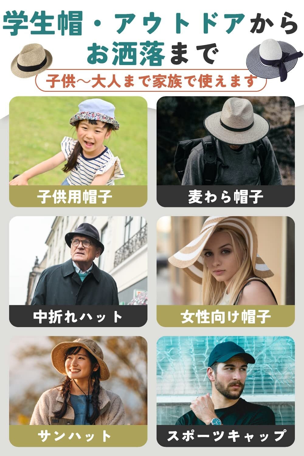 【 学生帽・アウトドアからお洒落まで 】バケットハット、麦わら帽子、中折れ帽子、ベースボールキャップなど多くに適用できる帽子サイズテープ。普段使いからスポーツ、キャンプ、お洒落、メンズ レディース など様々な生活場面でお役立て下さい。