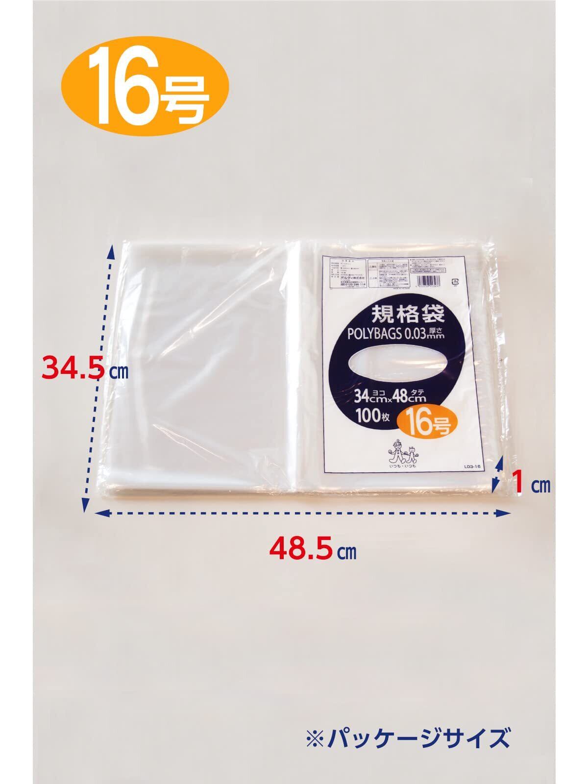 オルディ 食品保存 ポリ袋 規格袋 透明 16号 横34×縦48cm 厚み0.03mm 100枚入 食品衛生法適合品 ビニール袋 L03-16