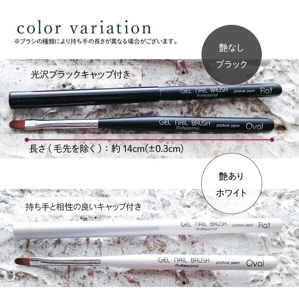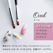 Oval:オーバル穂先がカーブになっていてキューティクルラインにフィット!はみ出ることなくキレイに仕上がる。定番のオーバルブラシオススメ仕様 ベースジェル、カラージェル、トップコート