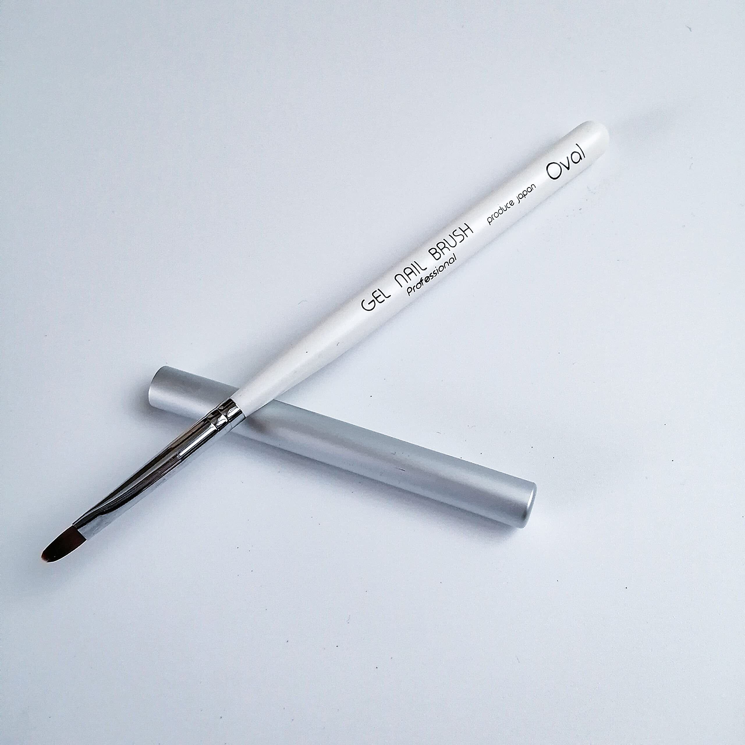 【ジェルネイル用 ブラシ】カラー:ホワイト 筆:オーバル ※キャップ付き
