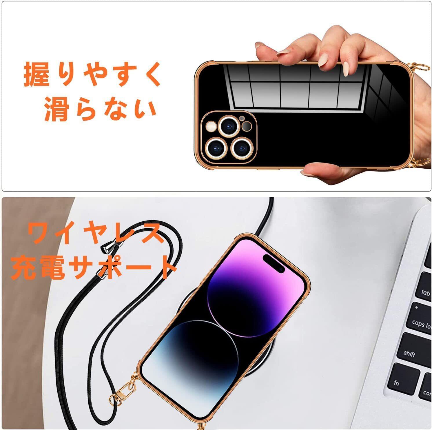 iPhone 14 Pro 用 ケース ショルダー 新型韓国 可愛い 薄型 軽量 TPU 耐衝撃 シリカゲル メッキ加 TPU ネック ショルダー ストラップ付き スマホ シリコン iphone 14pro ケース 首掛け 肩掛け 斜めかけ 縄掛け ケース ストラップ付き 1.5M 取り外し調節可能な アイフォン14 プロ カバー