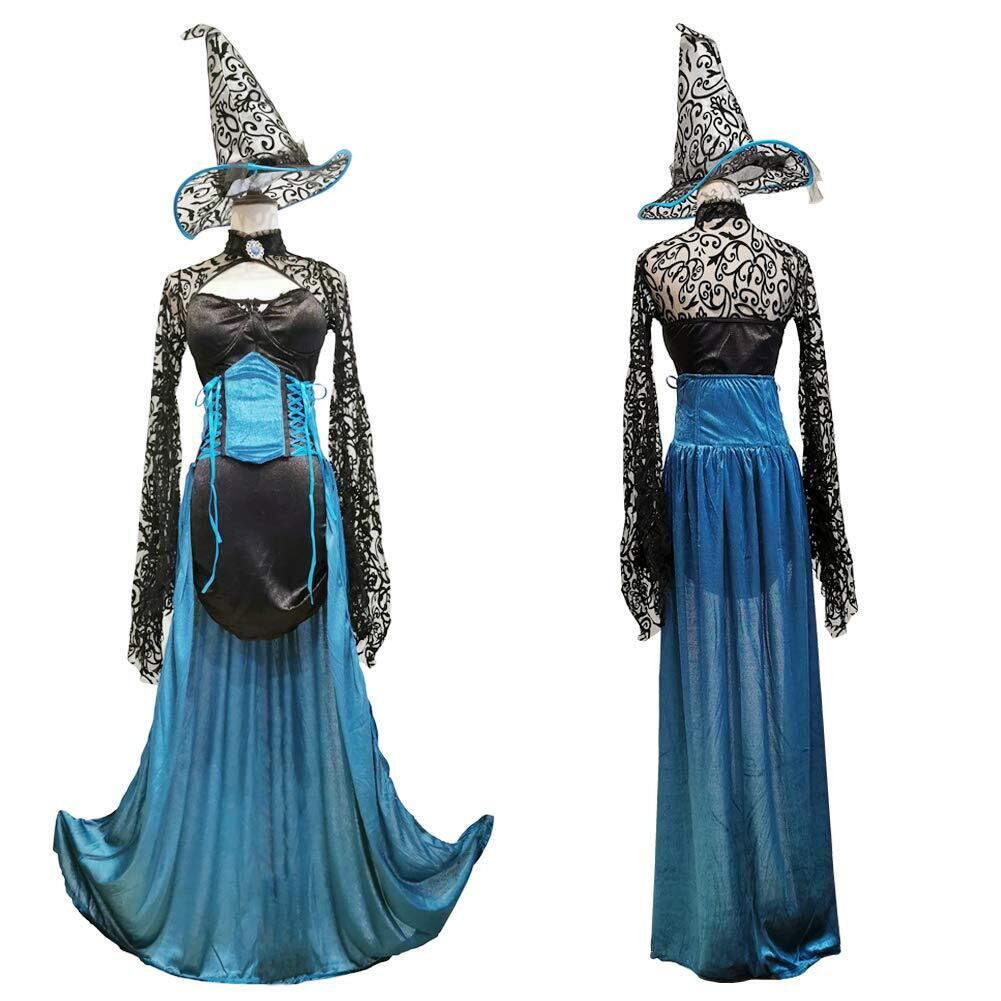IRIWA ハロウィン仮装 コスチューム 人気 魔女 ウィッチ コスプレ衣装 大人用仮装衣装 グッズ ロングドレス 公演服 (ブルー)
