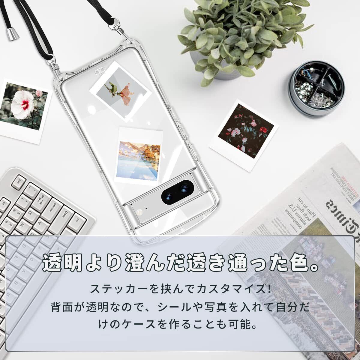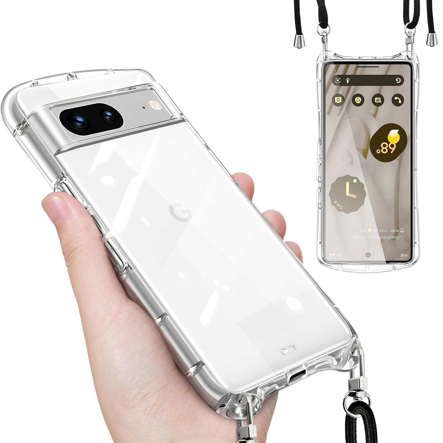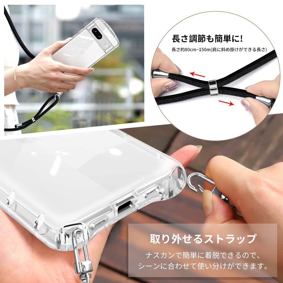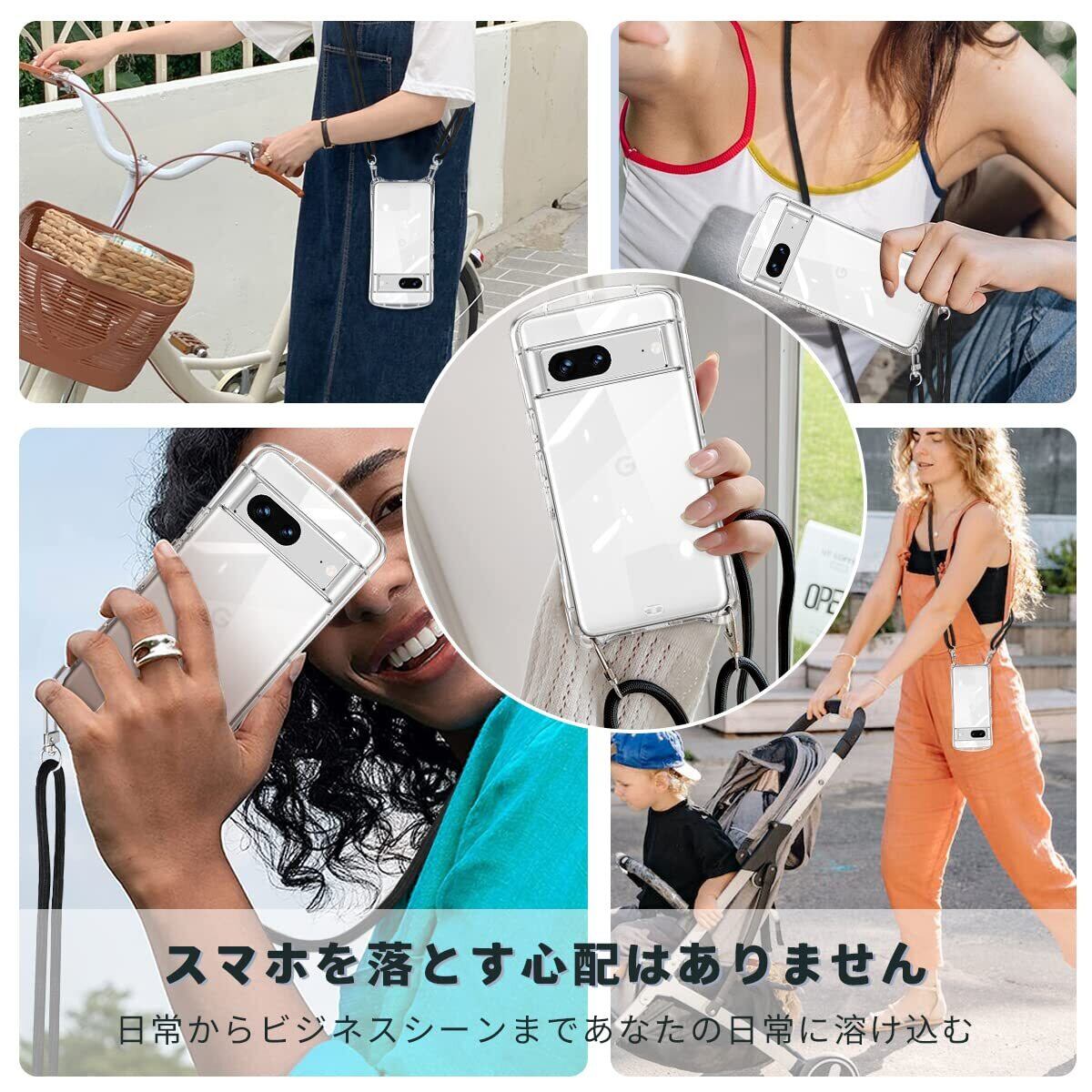 Google Pixel 7a ケース クリア ショルダー ストラップ付き グーグル ピクセル7a カバー 透明 肩掛け 斜めかけ TPU シリコン 耐衝撃 全面保護 薄型 韓国 可愛い 縄掛け 取り外し可能 長さ調整可能 スマホケース