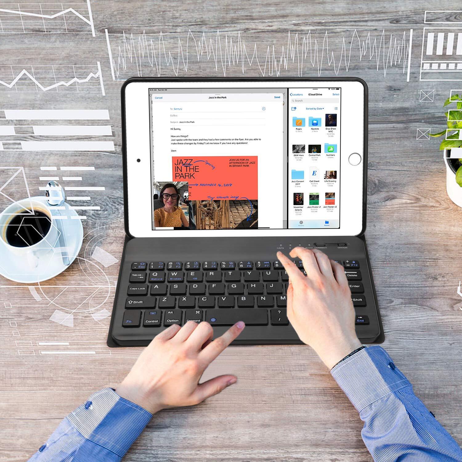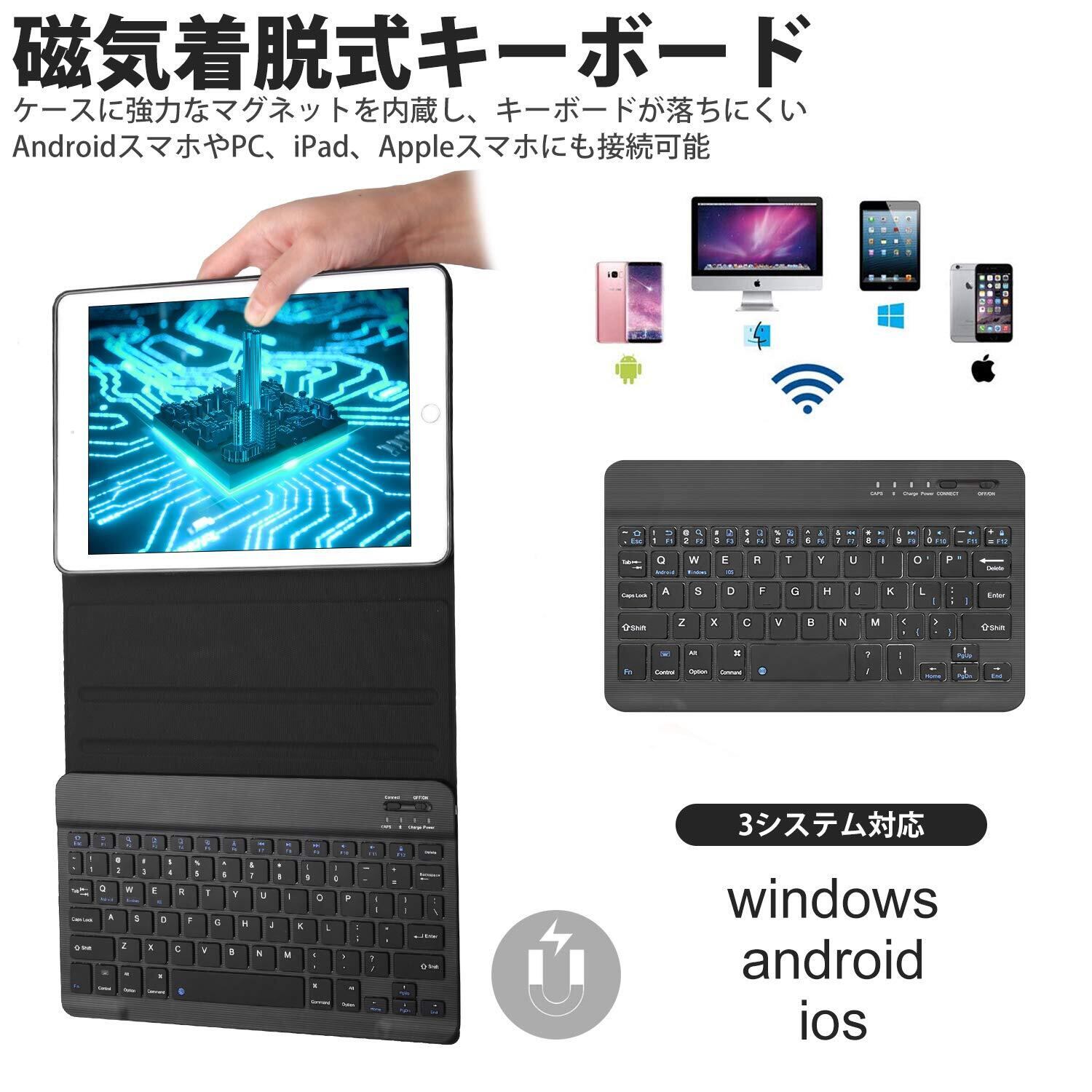 【脱着式Bluetoothキーボード】キーボードがAndroid、IOS、Windows3システムのiPadやPC、スマホにも適用します。ケースに強力なマグネットを内蔵し、分離式キーボードをしっかり吸着でき、キーボードが落ちにくいです。キーボードを外し、保護ケースとしても使えます。