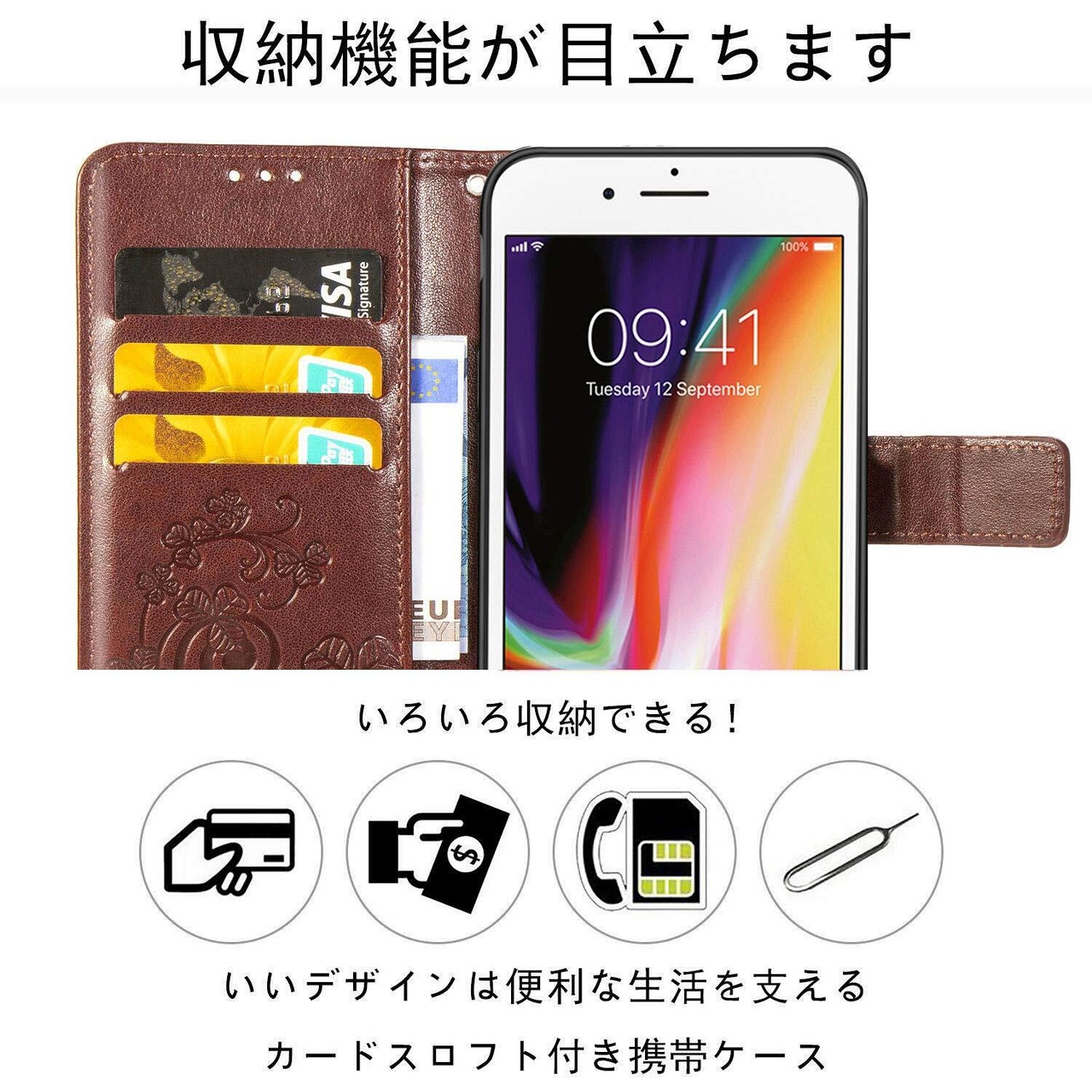 【モデル素材】に適用するiPhone SE 第3世代 (2022) / iPhone SE 第2世代 (2020) / iPhone8 / iPhone7。シェルは高品質のPUレザーで作られており,背面とディスプレイを保護します また,表面への浸透、汚れ、傷、ほこりも防ぎます。
