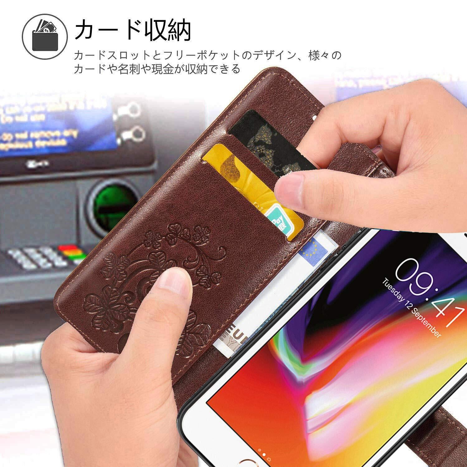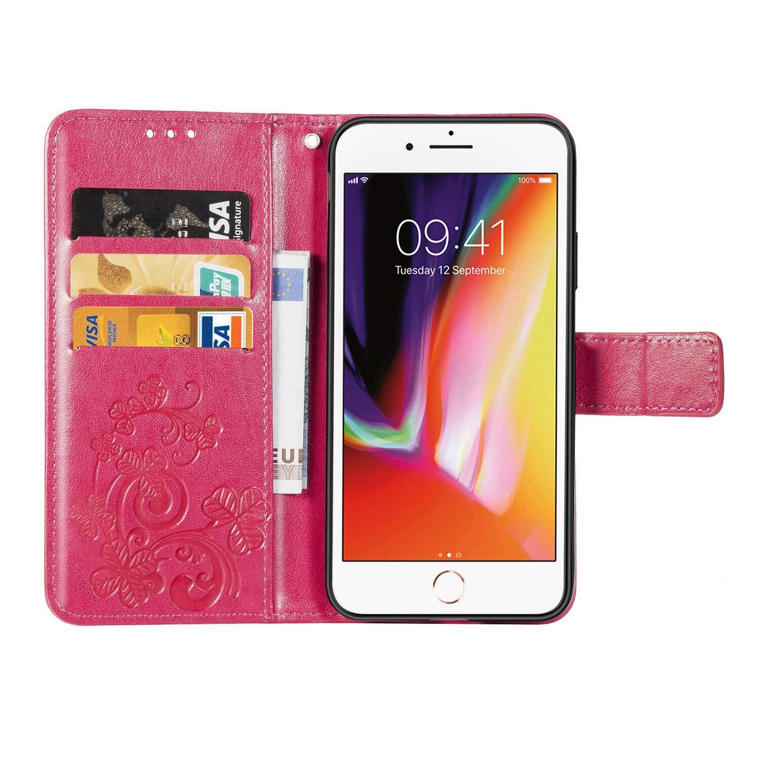 に適用するiPhone SE 第3世代 (2022) / iPhone SE 第2世代 (2020) / iPhone8 / iPhone7 ケース 手帳型 ノートブック型携帯電話保護カバー多機能携帯電話ホルスター財布携帯電話ホルダーバンプパターンテクスチャ耐久性摩擦耐性携帯電話ケース男性と女性に適した多色オプション (四つ葉のクローバー赤)