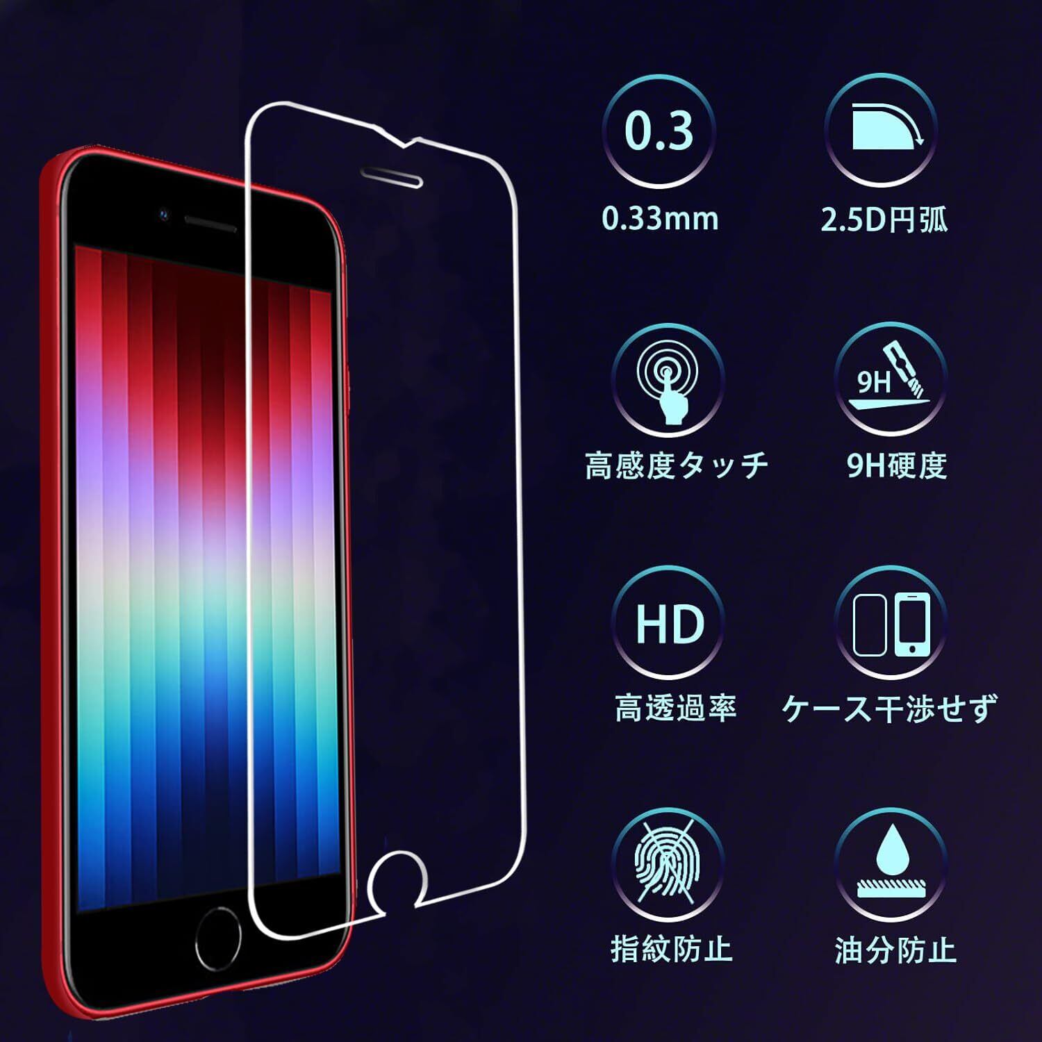 対応機種:iPhone 6/6s/iPhone8/iPhone7/ iPhone SE 第3世代 (2022) / iPhone SE 第2世代 (2020) フィルム 強化ガラス 液晶保護フィルム