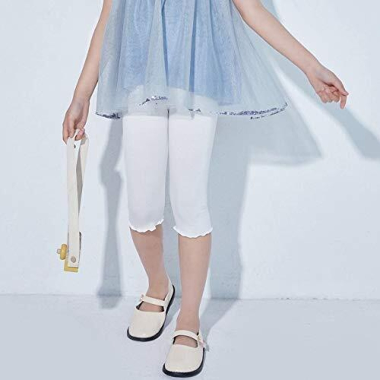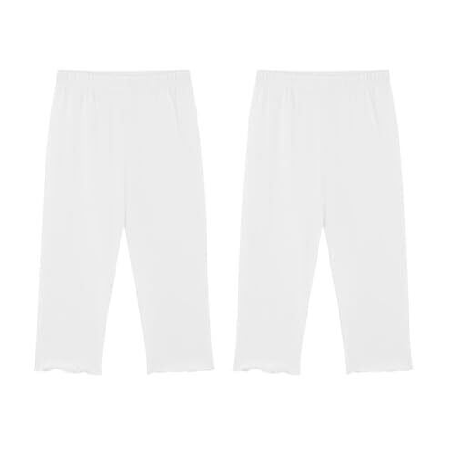 [UNIMOR] 女の子 七分 丈 レギンス 2枚セット 薄手 ダンス パンツ タイツ 春 夏 秋 ストレッチ 可愛い 無地 7分レギンス ベビーレギンス (ホワイト, 100)