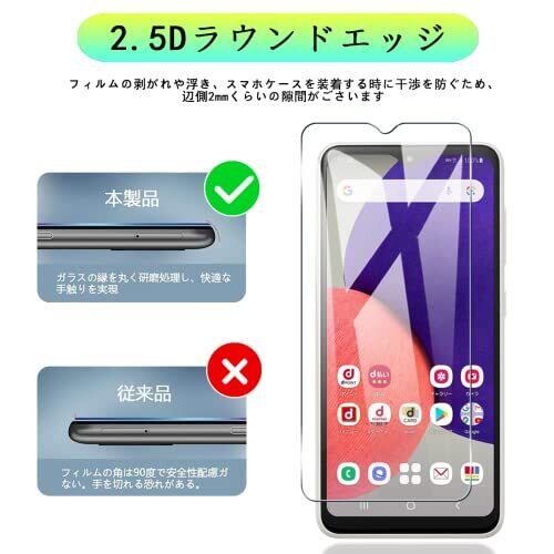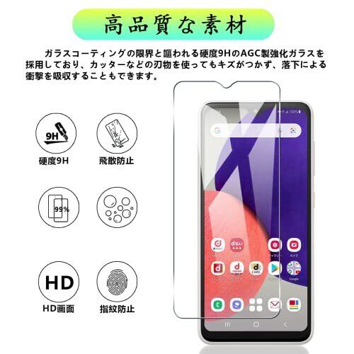 【飛散防止可能の9H硬度】 対応 Galaxy A22 5G / SC-56B ガラスフィルム 保護フィルムはす旭硝子で作られており、スマホ保護フィルムの中で最高レベルの9H硬度に達しています。手にフィットして持ちやすく滑りにくいので落ちにくいです。万が一落ちてもフィルムが衝撃を吸収してくれるので、スクリーンの損傷を最低限まで抑えられます。また、特殊な飛散防止設計により、ガラスが割れても飛散しないため、安心してお使いいただけます。