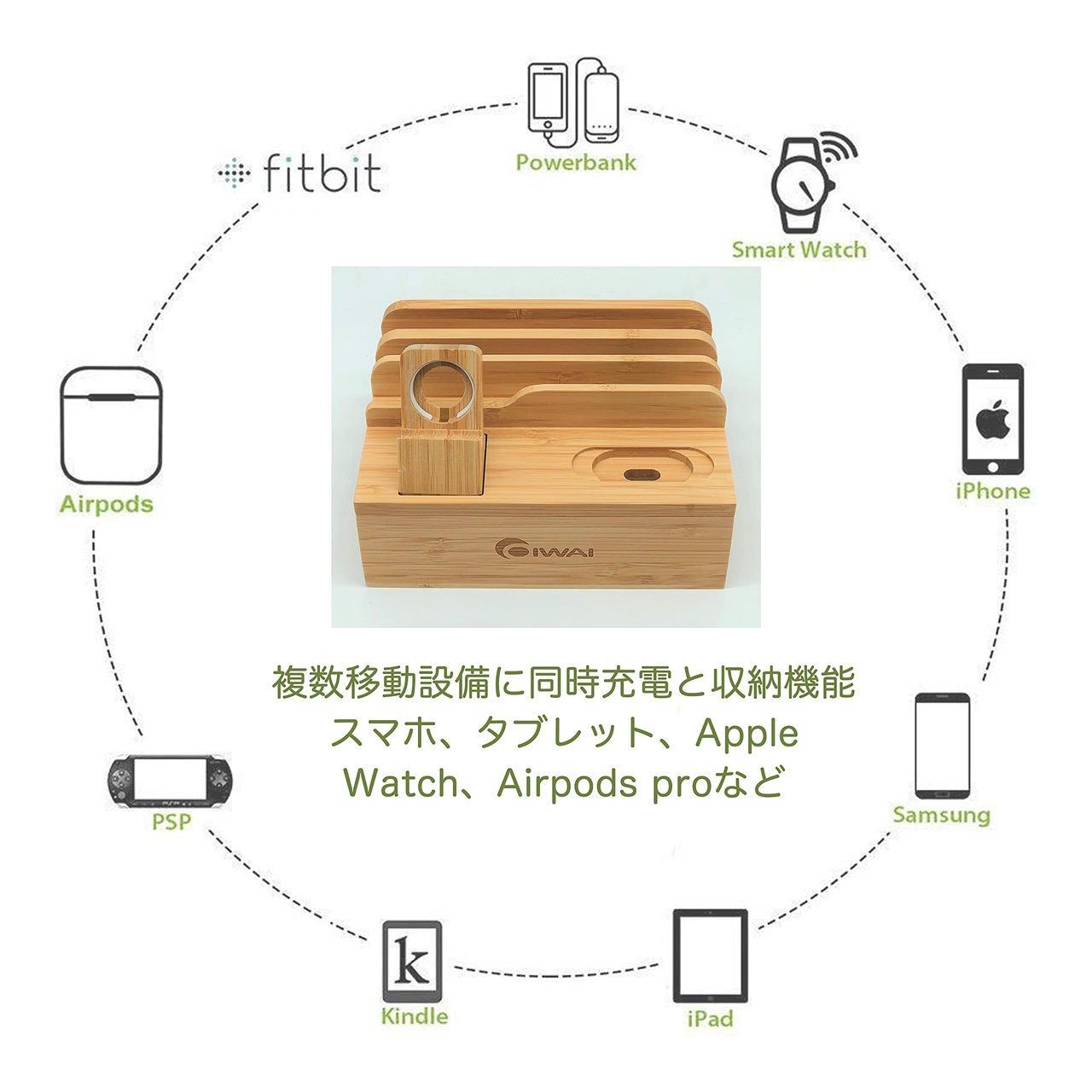OIWAI 充電ステーション 充電スタンド 7台同時充電 ケーブル収納ボックス スマホ充電台 モバイル機器をスッキリ収納 iPhone/iPad/Galaxy/Android各種適合 (竹木製)