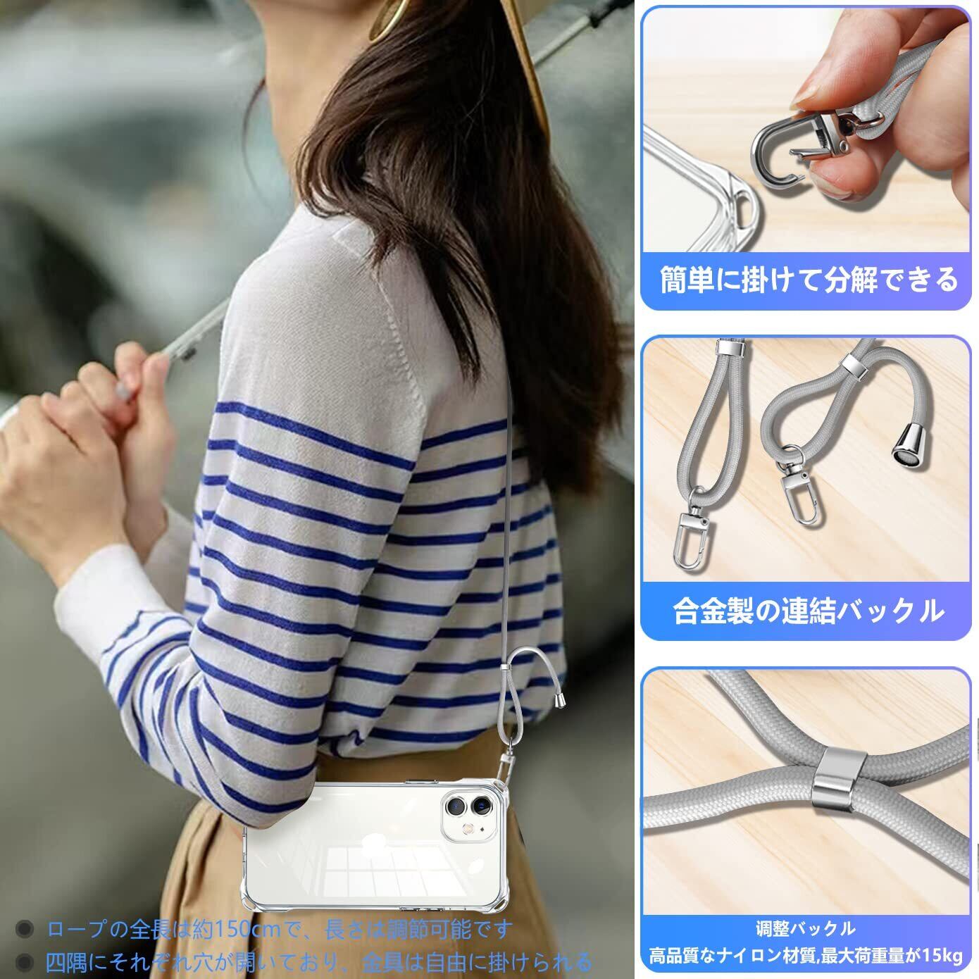 iPhone 12 ケース クリア ショルダー 耐衝撃 ストラップ付き スマホケース アイフォン12 カバー 透明 薄型 軽量 TPUスマホ シリコン 紐付き 斜めがけ 織りストラップ付き 肩掛け 調節可能なショルダー クロスボディ 多目的キャリー ファッションデザイン ワイヤレス充電対応クリアカバー 傷防止 全面保護 落下防止 すり傷防止 カメラ保護(全透明)