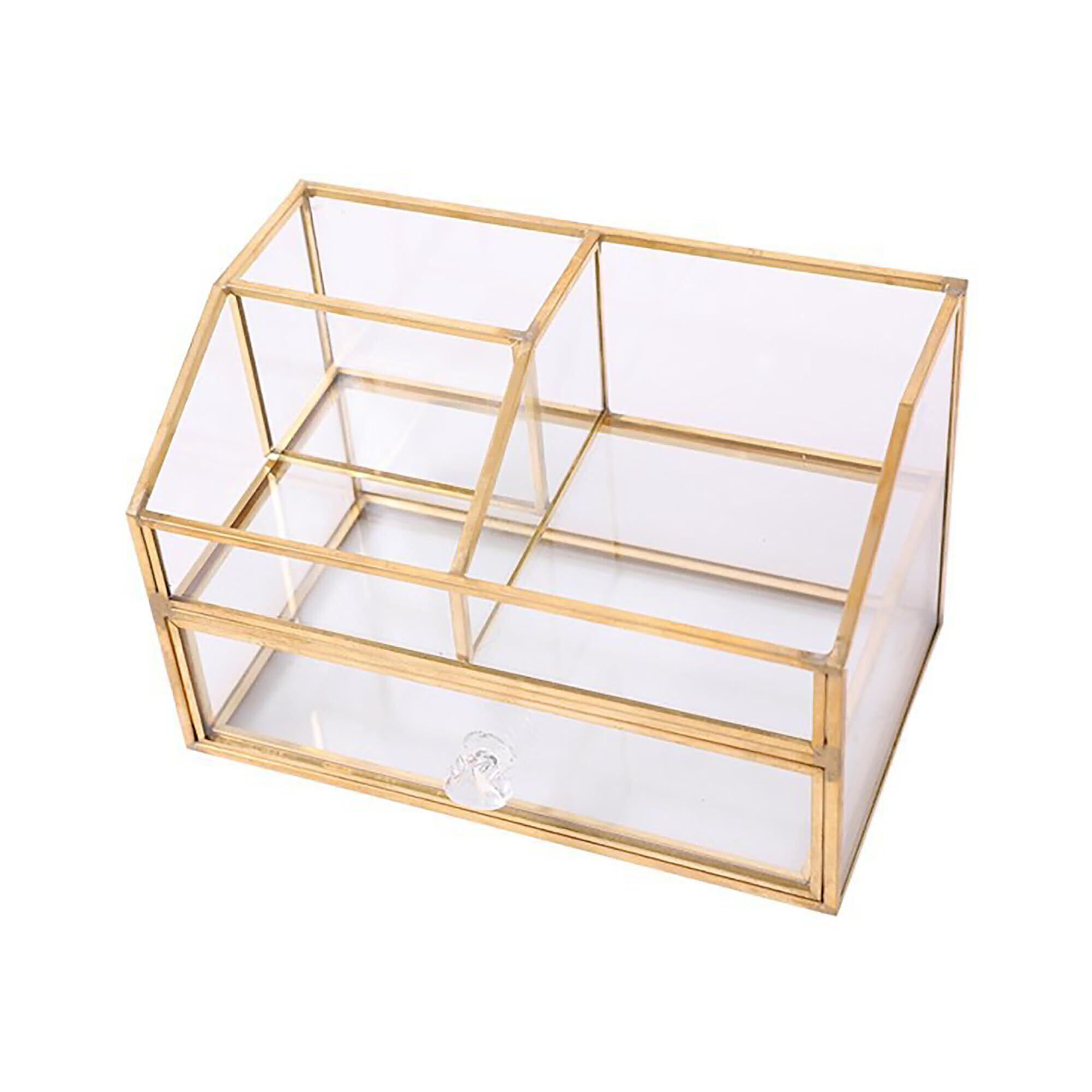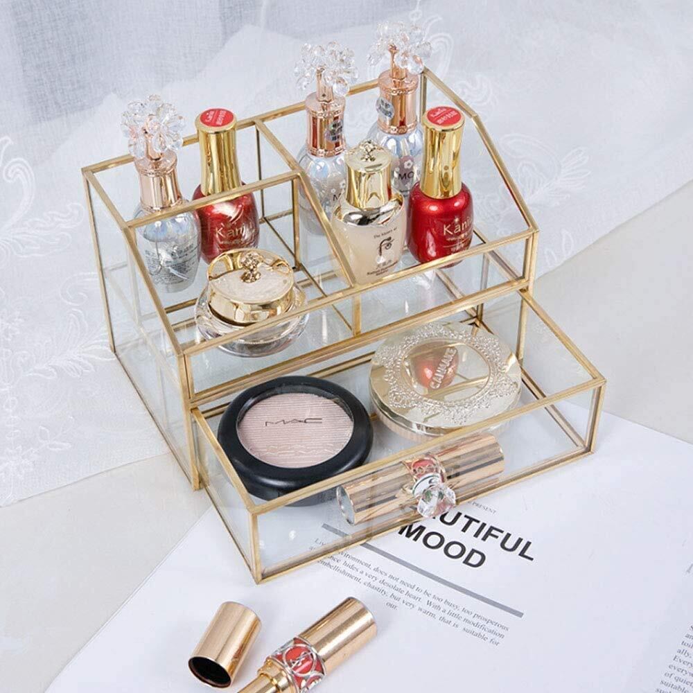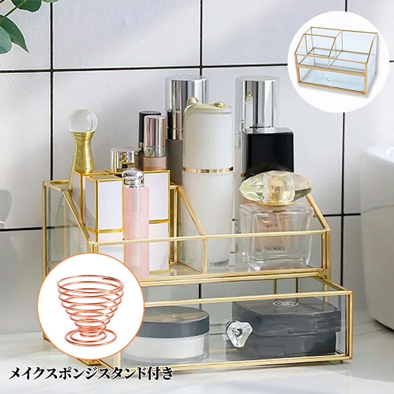 BelleLife コスメ収納 メイク収納 小物入れ 化粧品収納ボックス 透明ケース ガラス 真鍮 化粧品収納ラック 耐久性 整理整頓 卓上収納 リップケース 引き出し 化粧品入れ おしゃれ 透明ガラス 化粧品入れ コスメ収納 ネイルジェル収納 メイクボックス 化粧品 スキンケア ブラシ
