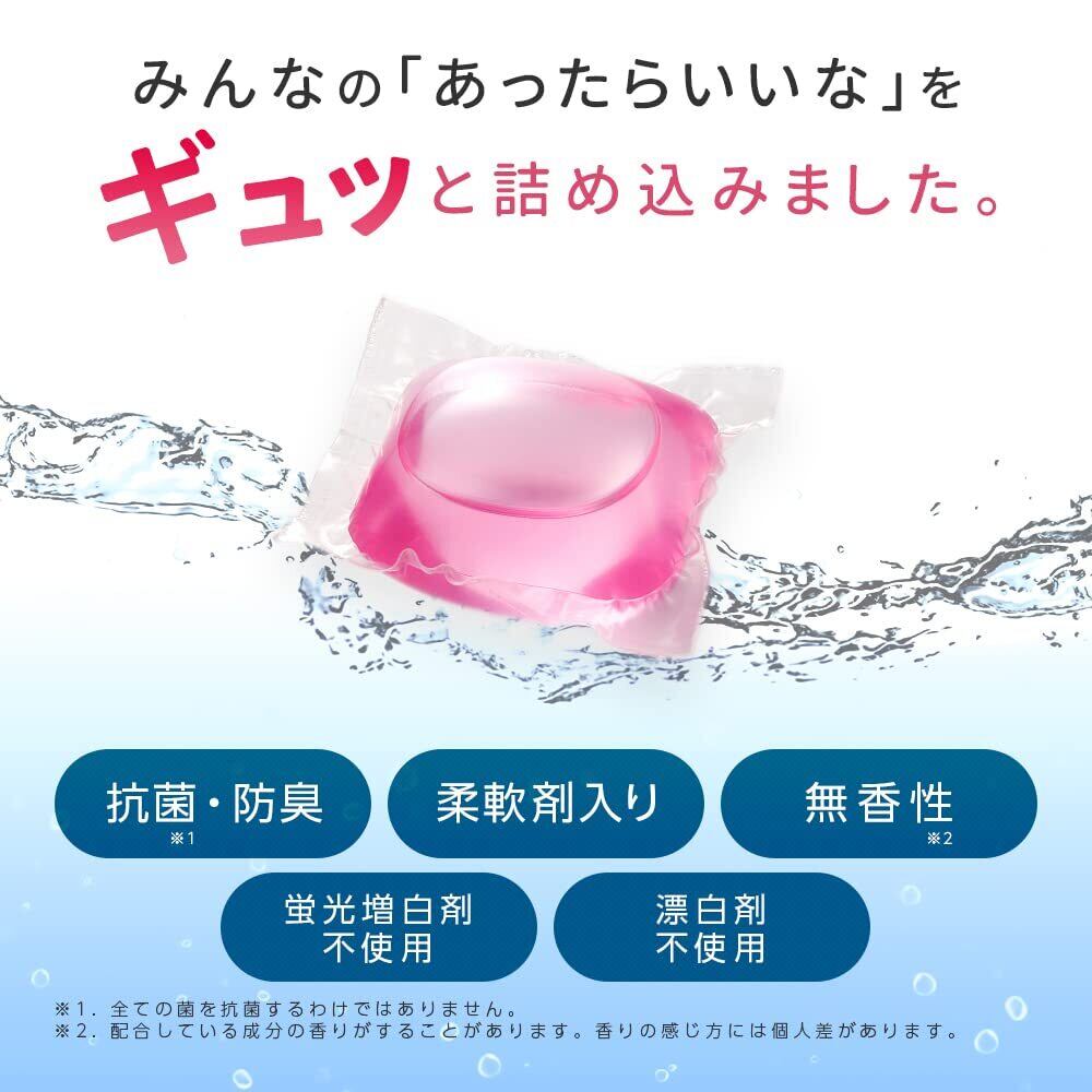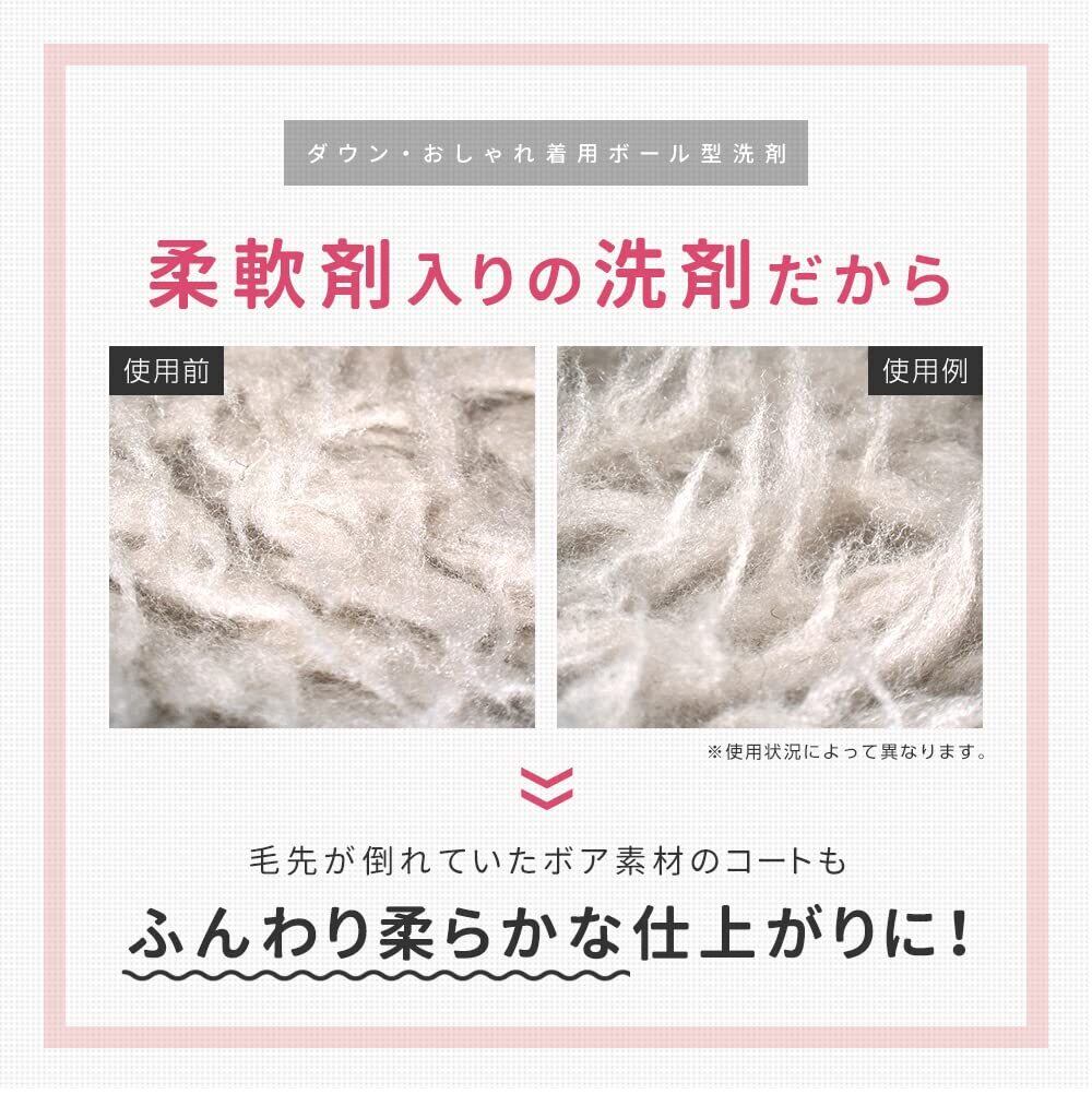 【柔軟剤入りでふんわり柔らかな仕上がり】柔軟剤入りだから、ボール型洗剤だけで衣類のシワを抑え、ふんわり仕上げます。また、抗菌・防臭効果でいやなニオイを抑えてくれるので、雨の日の部屋干しも安心です。※全ての菌を抗菌するわけではありません。