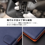 商品の特性2:高品質の革でしっかりした作られ、見た目も触り心地も優れている財布型のスマホケースです。装着部分は柔らかいシリコン製で、着脱しやすく衝撃も吸収してくれます