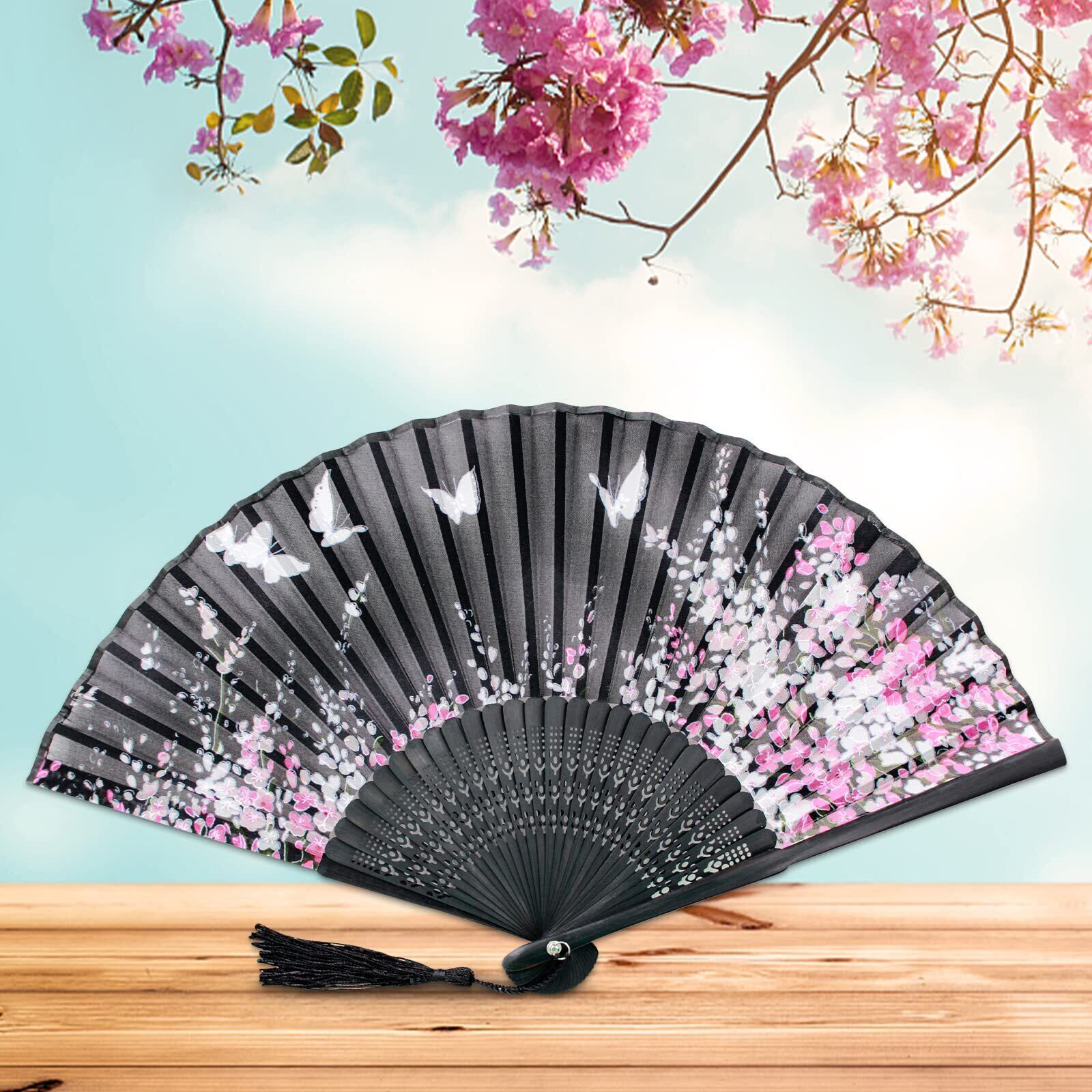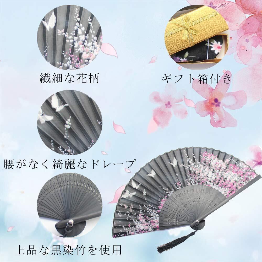 [boshiho] 扇子 竹製 和風 夏 おしゃれ シルク 花柄 扇子袋付き 着物 お祭り 花火大会用 和装小物 プレゼント