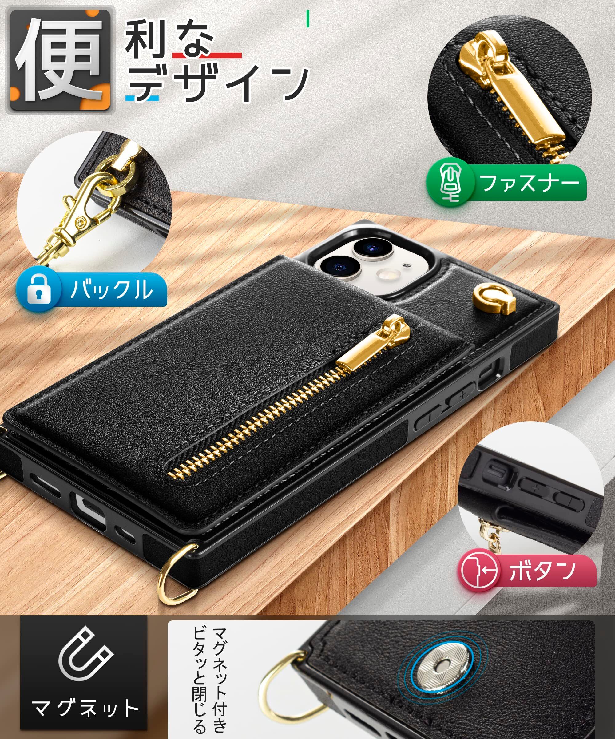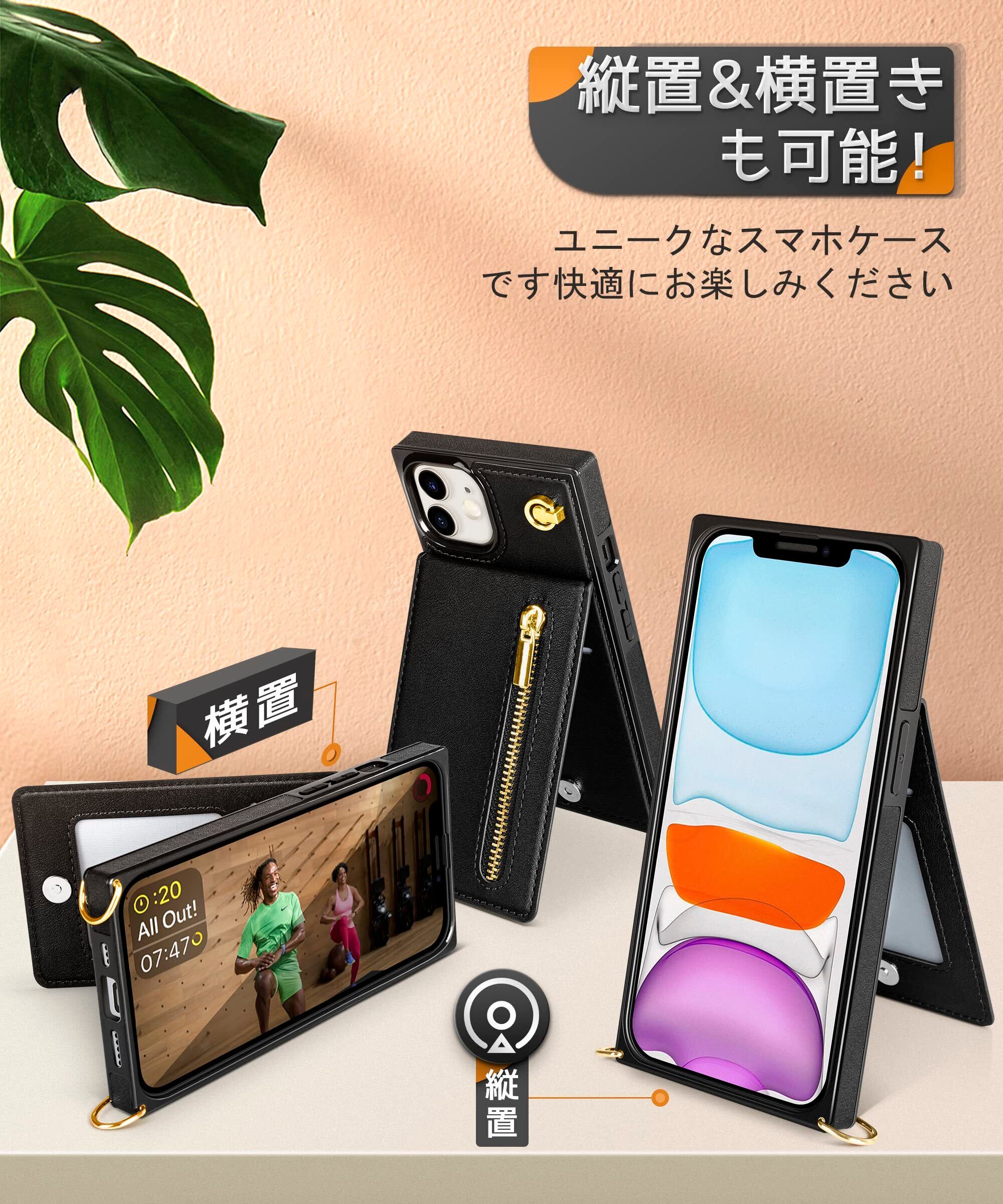 YIHARA iPhone 11 ケース手帳型 iPhone11スマホ ケース 財布型 iphone 11適用 携帯ケース 肩掛け 首かけ 斜めがけ ショルダー アイフォン11 ケース手帳型 背面 カード収納 ストラップ付き 上下開 長さ調整可能 ブラック