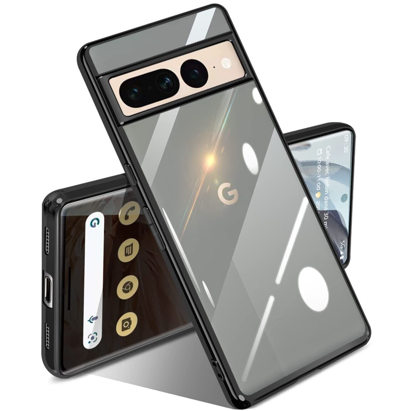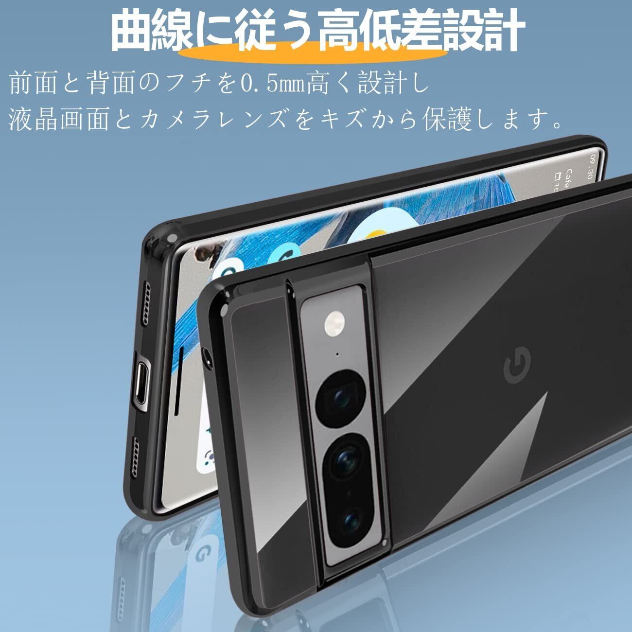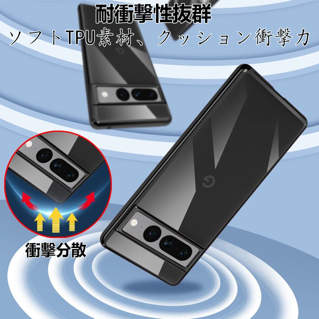 Google Pixel7 pro ケース クリア 耐衝撃 カバー 透明 メッキ加工 ワイヤレス充電 薄型 柔らかい 軽量 TPU 黄変防止 ファッション ソフトケース 人気 保護カバー(ブラック)