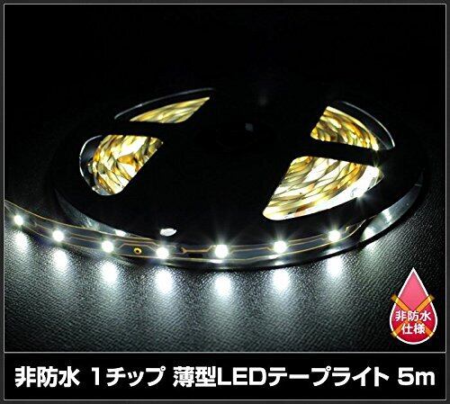 Kaito Denshi(海渡電子) LEDテープライト 300灯 12V 両端子 1チップ 薄型 非防水 単体 500cm 白色