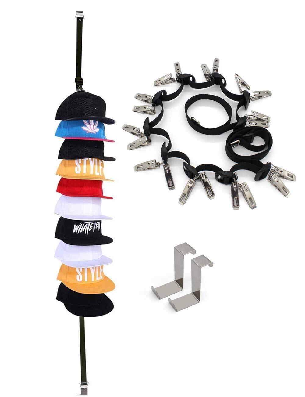 最大20個のキャップを保持:屋外または壁に最大20個の野球用キャップまたはバイザーを保管および整理します。1本のストラップが付属しています。各ストラップには20個のキャップまたはバイザーを保持するための20個のフックがあります–合計20個のフック。調整可能なキャップで最適に機能します。 とバイザー。