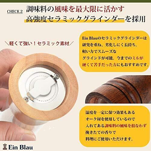 Ein Blau 多目的ミル ペッパーミル ソルトミル 天然オーク 無垢材 セラミック (14.5㎝ ヴィンテージ色)