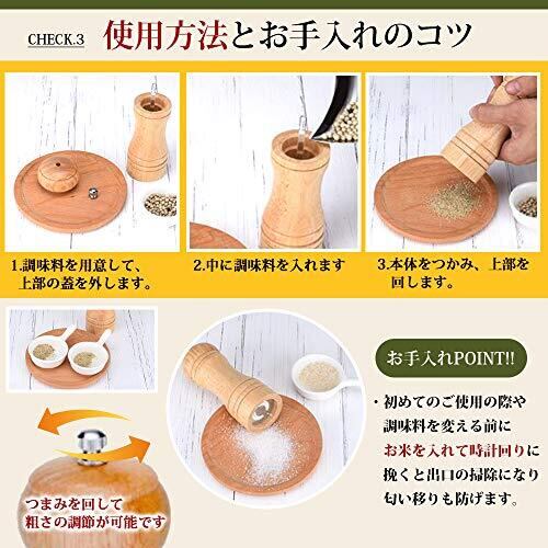 スタイリッシュで本格的な木製ペパー・ソルトミルです。岩塩・コショウはもちろんゴマ・山椒・唐辛子等キッチンや食卓で挽きたての風味を楽しめます。好みやお料理に合わせ調整ツマミで粗さの調節が可能。