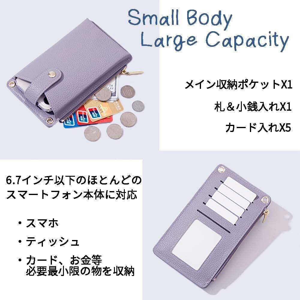 【サイズ・仕様】約11×18×2.5cm(ショルダーストラップの長さ/72〜134cm)メインポケットX1、お札&小銭入れX1、カード入れ×5、(iphone11Pro Max5.5一台収納可)