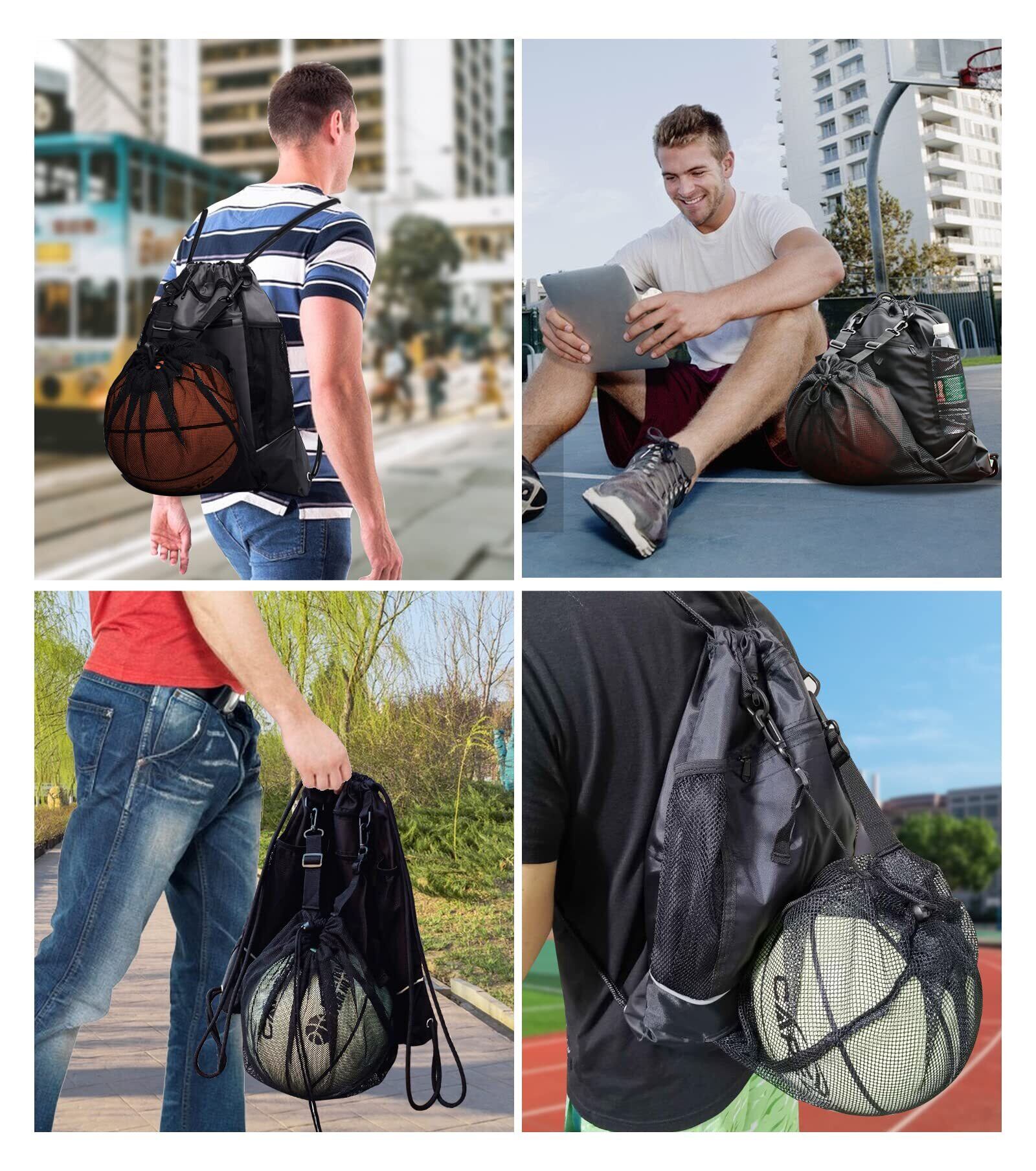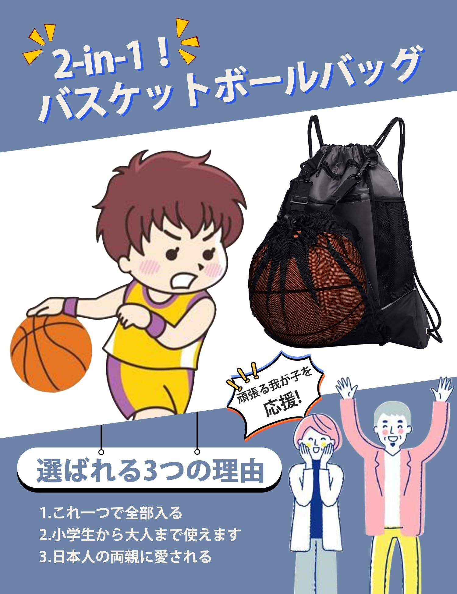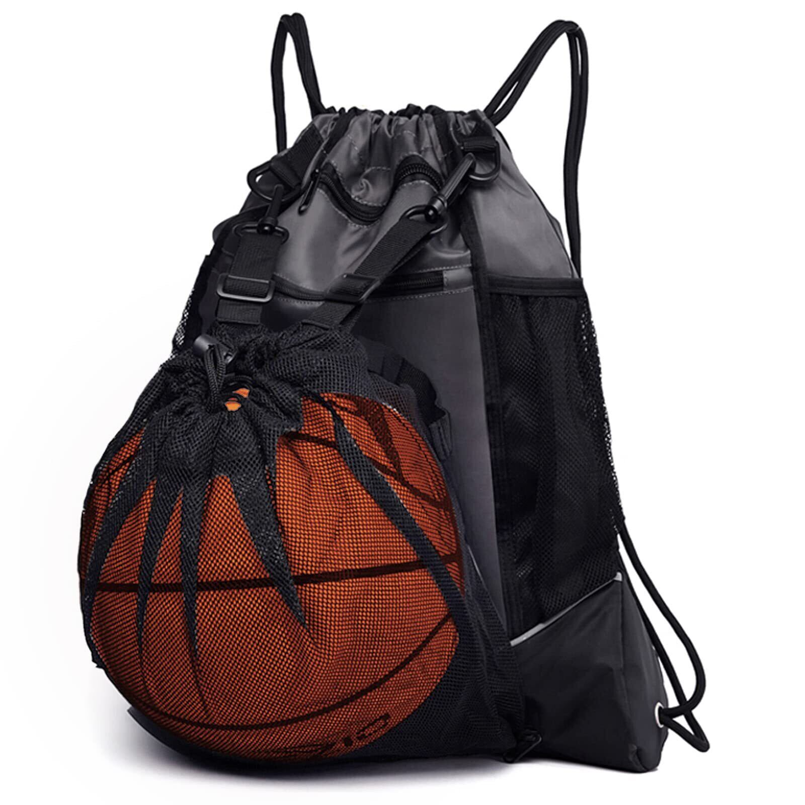 バスケットボールバッグ ボールバッグ リュック バスケットボール サッカーボール 入れ ボールケース ジムサック ナップサック スポーツバッグ 大容量 撥水 軽量 部活 運動 旅行用 メッシュ袋付 (グレー)
