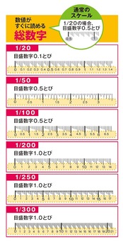 縮尺目盛(m):1/1(0-150mm)、1/100、1/150、1/200、1/250、1/300