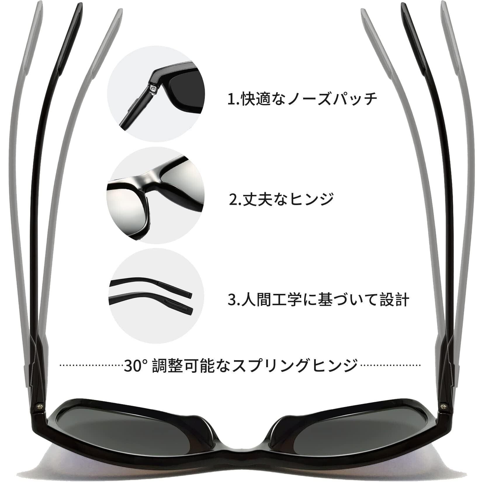 【TAC偏光レンズ】運転用サングラスは多層TAC偏光レンズとUV400技術を融合。水面や路面からの乱反射グレアを効果的に除去し、クリアな視界を提供するとともに、紫外線から目を全方位に保護します