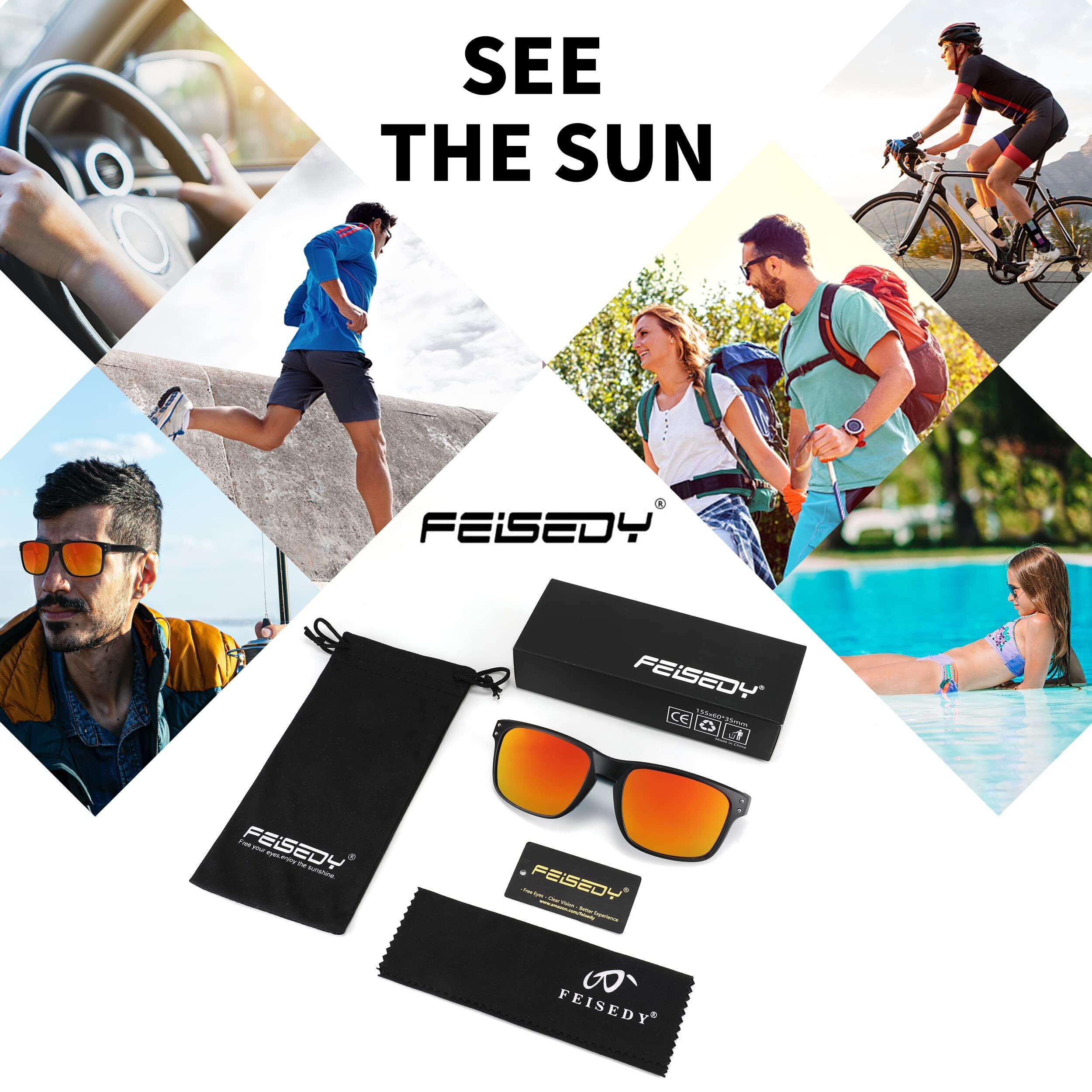 [FEISEDY] スポーツサングラス メンズ 偏光 大きい 人気 サングラス ウェリントンフレーム 100%uvカット 釣り 運転 ドライブ サングラス ミラーレンズ B2234