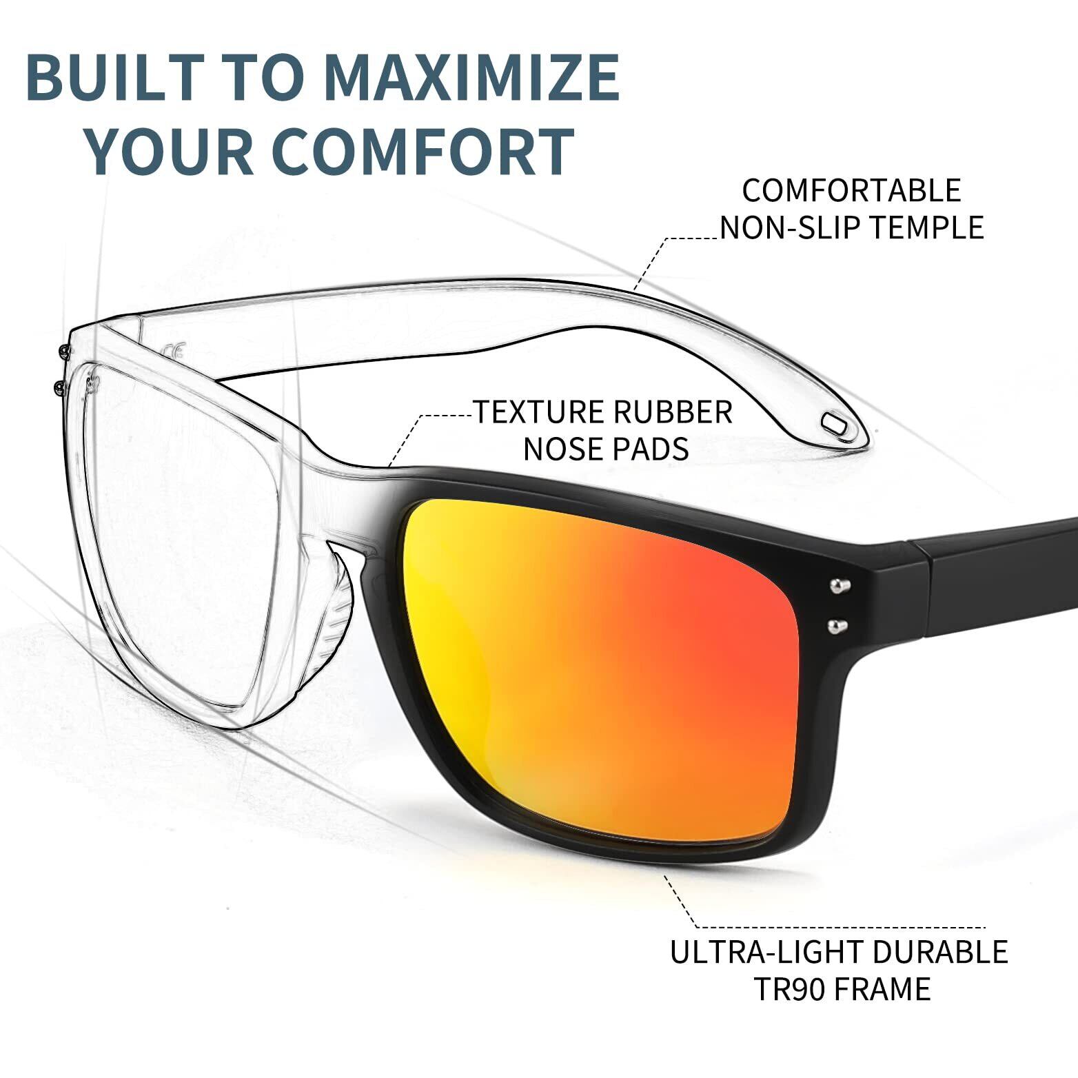 プレミアム素材:TR90フレーム構造により、一日中軽く快適に感じます;木目ゴム鼻当ての設計によりグリップ力が増加し、滑り止め効果を発揮します。 スプリングヒンジは優れた弾性キットを採用しており、テンプルを外側へ伸ばし、曲げたり衝撃に耐えることができます。