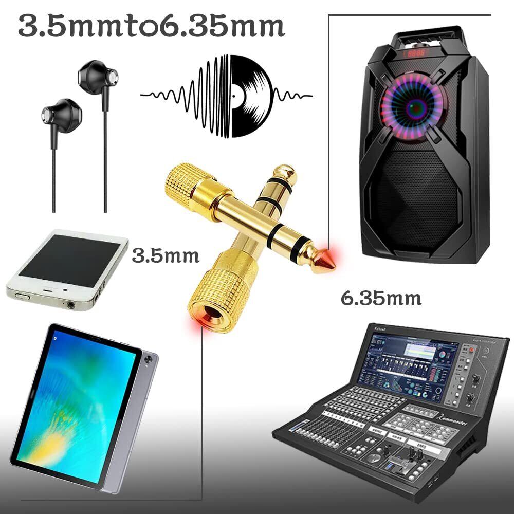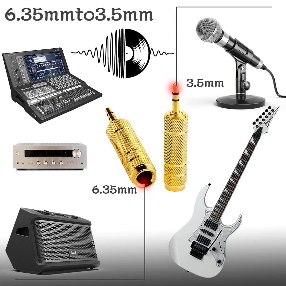 6.35mm to 3.5mm、ミキサー、スピーカーの 6.35mm ジャックをヘッドフォン、マイクまたはキーボード、電子ドラム用の 3.5mm ジャックに変換するのに最適です。