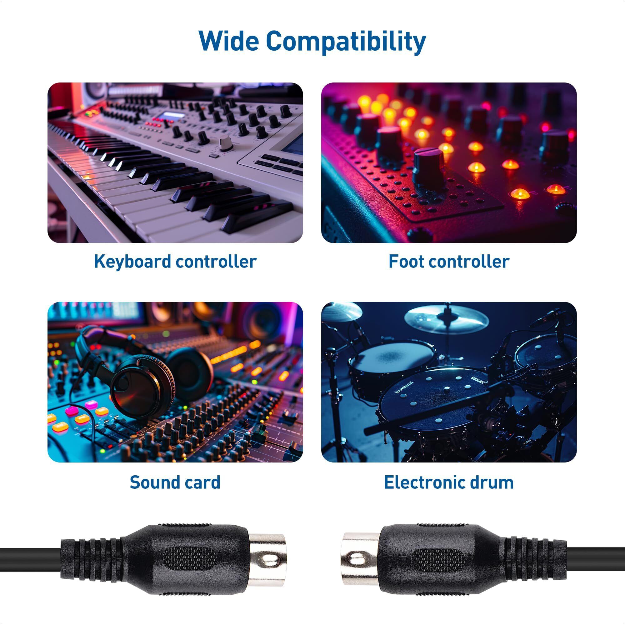 【幅広い互換性】5 PIN DIN Midi ケーブルはMIDIキーボードコントローラー、Behringer FCB1010などのMidiフットコントローラー、Korg Volca SampleなどのMIDIアナログシンセサイザーまたはMIDIシーケンサー、Focusrite Scarlett 18i8などのMIDIオーディオインターフェイスボックス、電子ドラムマシン、電子ピアノなど標準なMIDIポートを搭載したデバイスに接続します。