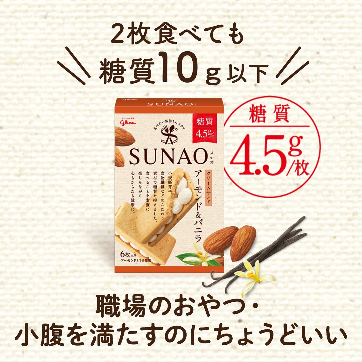 SUNAO(スナオ) クリームサンド アーモンド&バニラ 6枚×7箱 江崎グリコ お菓子 おかし ビスケット クッキー ロカボ 1枚あたり糖質4.5g