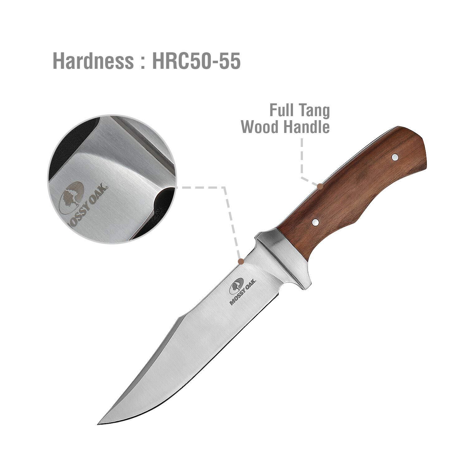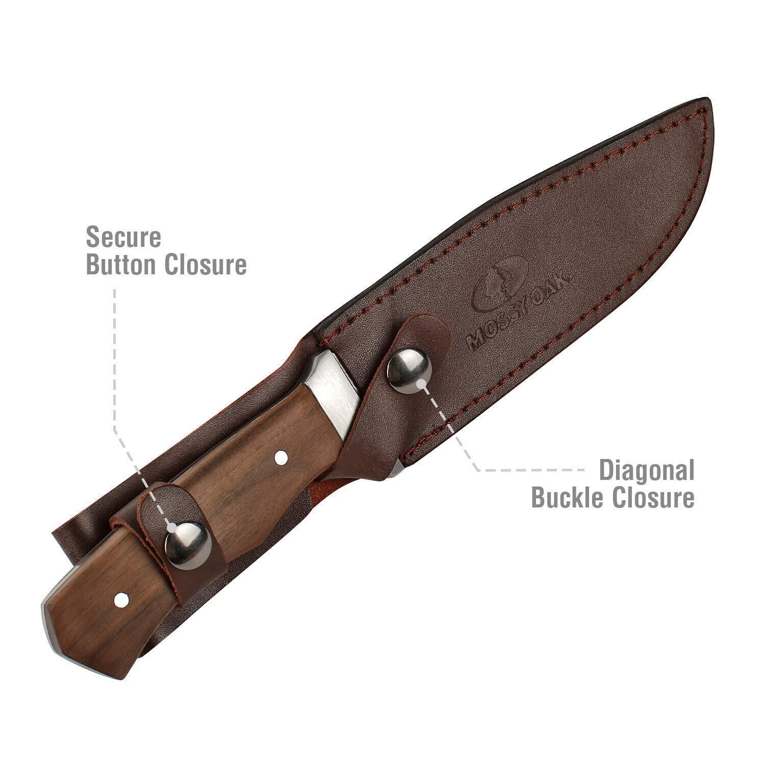 MOSSY OAK ナイフ シースナイフ フルタング 天然ウッドハンドル 切れ味良い アウトドア キャンプ サバイバル 釣り 薪割り 登山用 キャンピングナイフ レザーシース付き 全長275mm