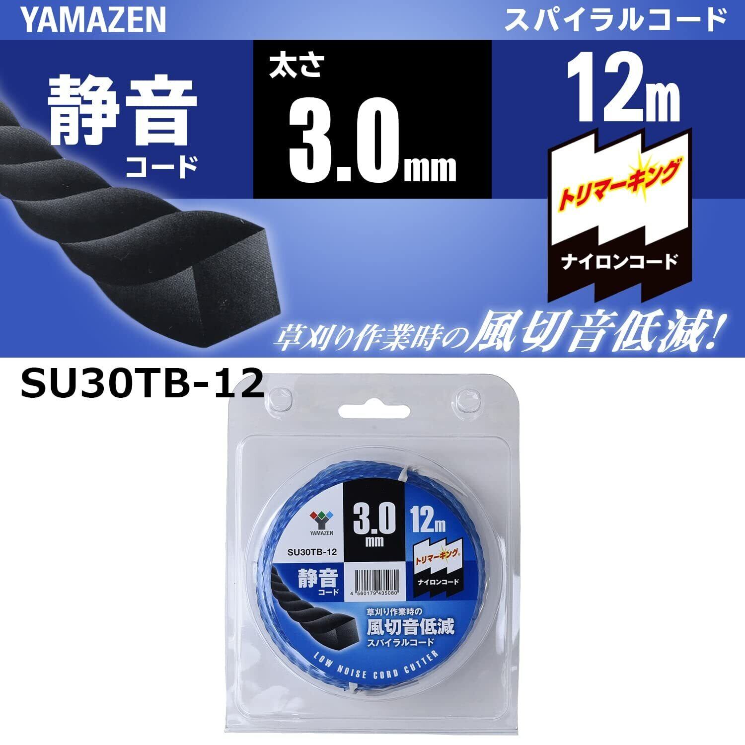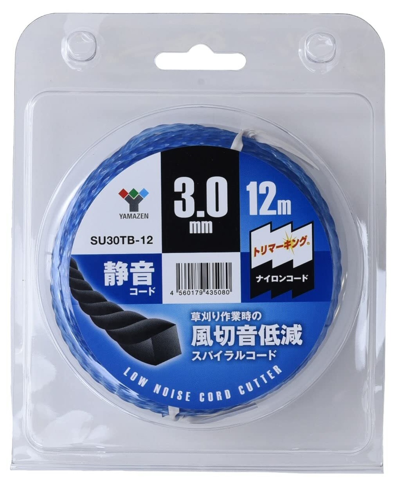 山善(YAMAZEN) ナイロンカッター 静音コード 草刈用 (太さ3.0mm/コード12m) 替刃 草刈り機 刈払い機 SU30TB-12