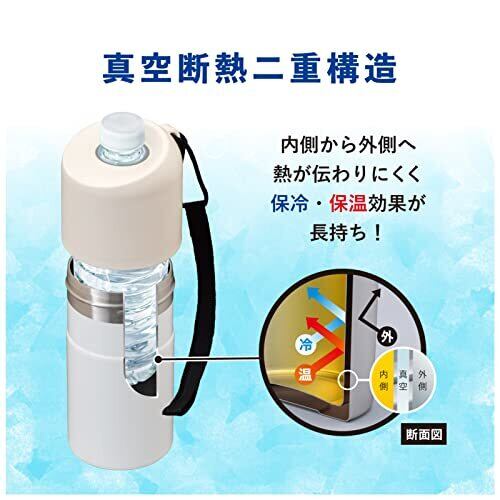 アトラス ペットボトルホルダー 水筒 保冷 ペットボトルクーラー 500ml 650ml 真空断熱 アイボリー ストラップ付き ボトルインボトル ABIB-BIV