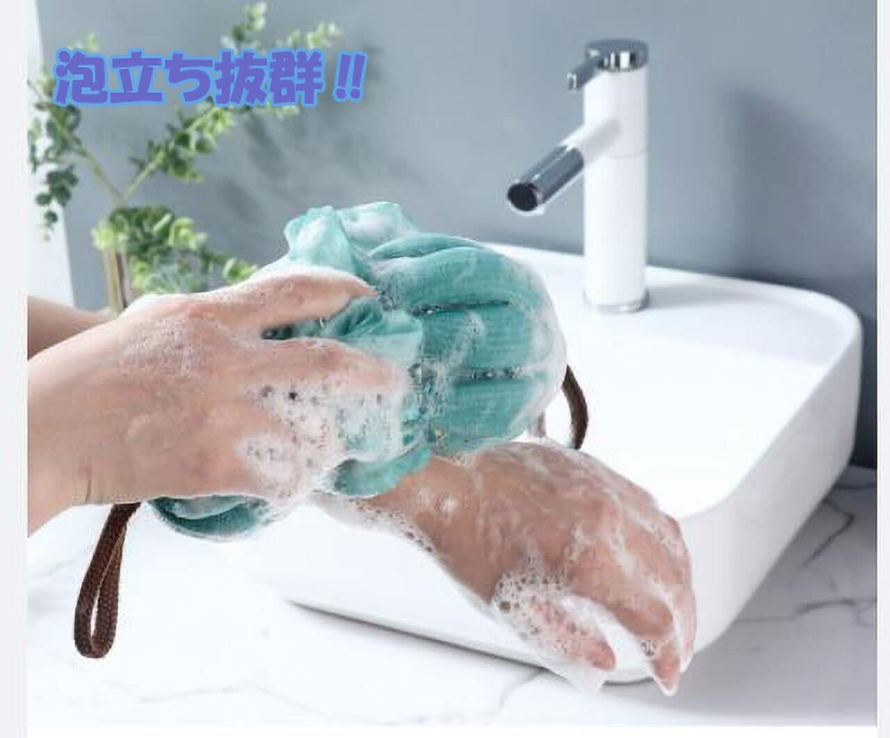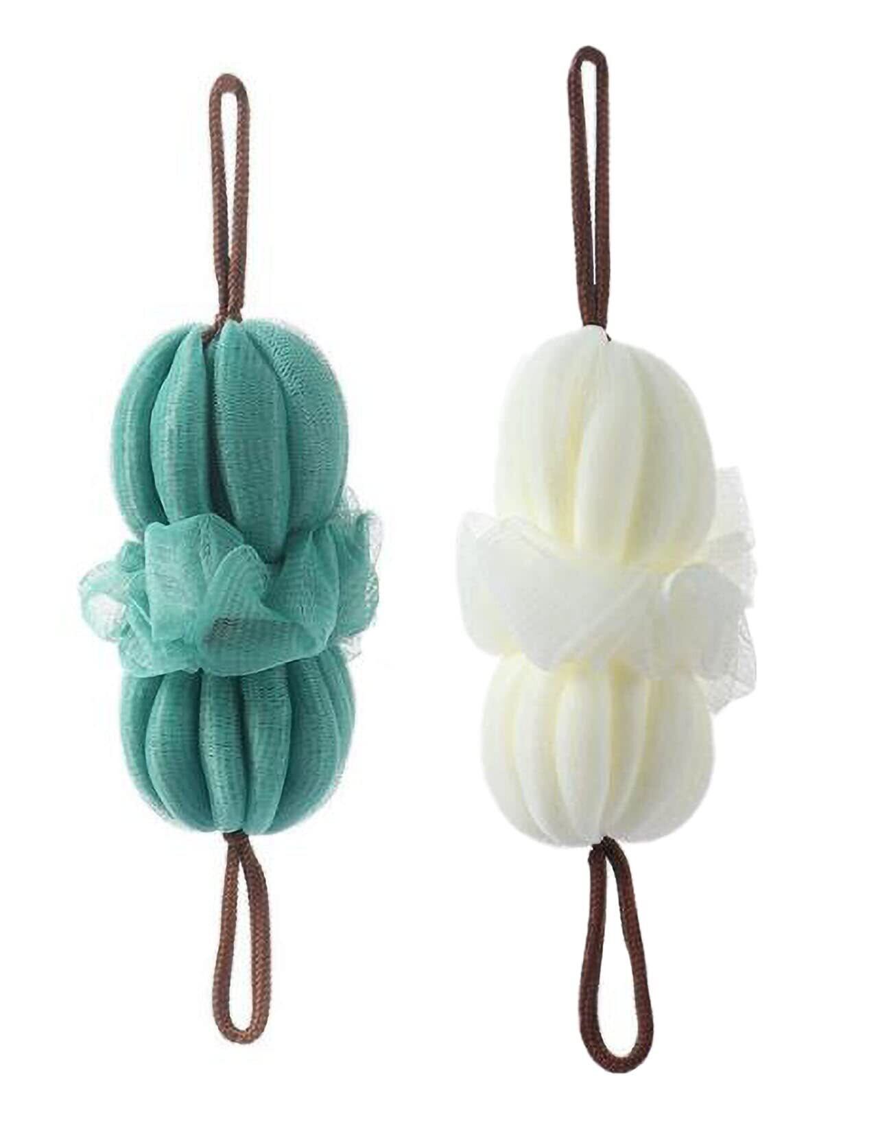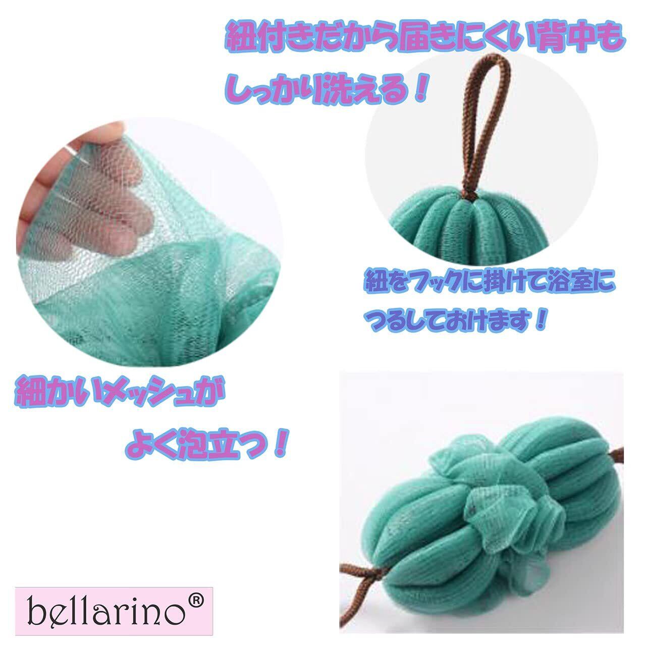 bellarino ボディスポンジ 背中 風呂 ボディウオッシュ 泡立てネット スポンジ 体 お風呂用 (アイボリー+青緑)