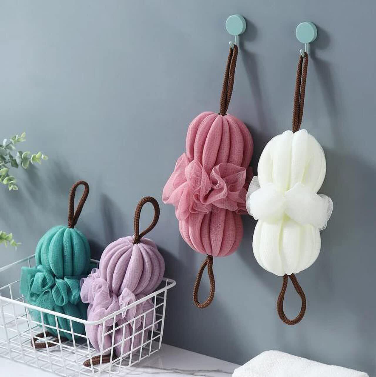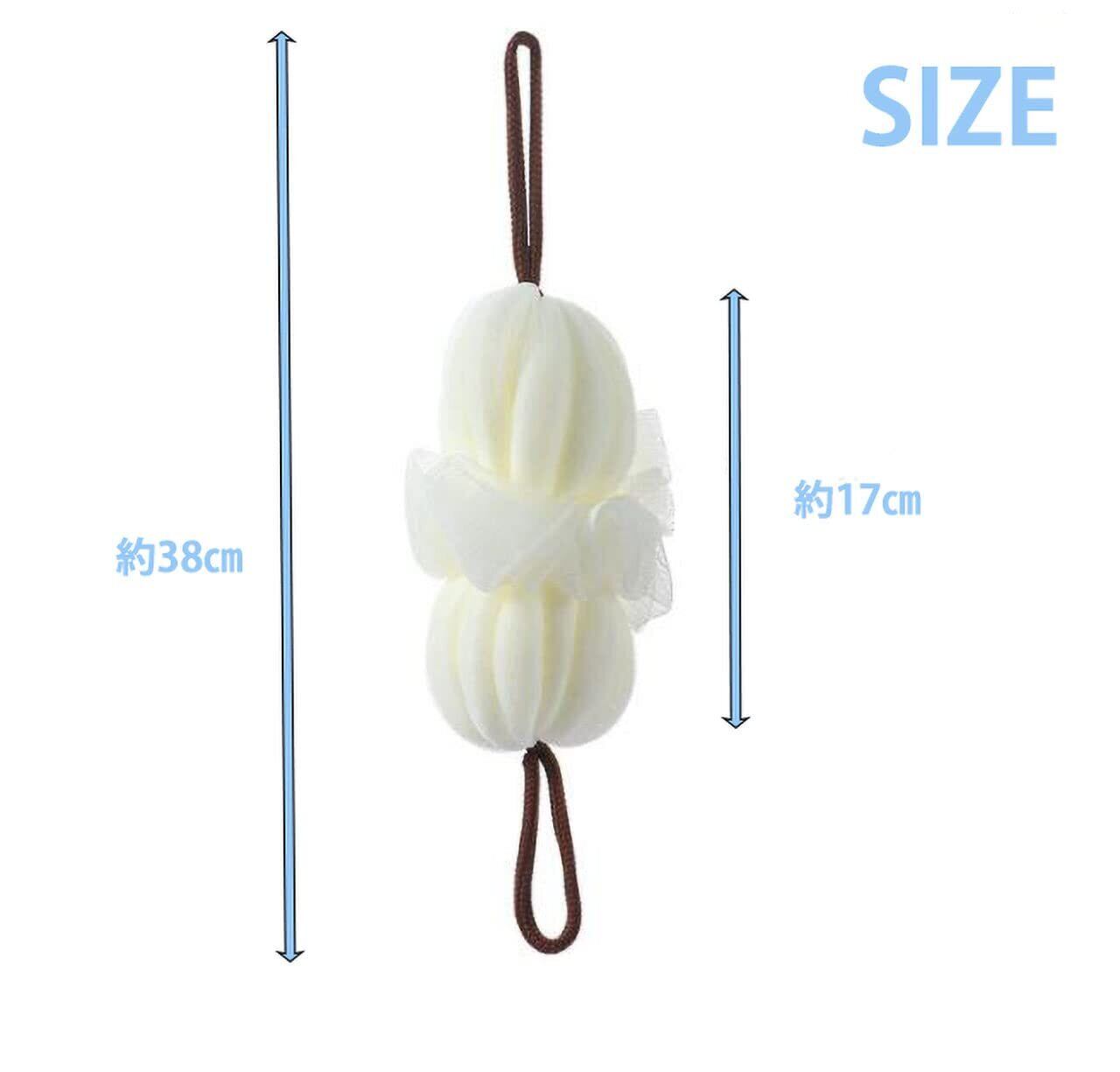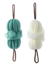 両端に紐のついたとっても洗いやすく泡立ちの良いボディースポンジ2個セットです。